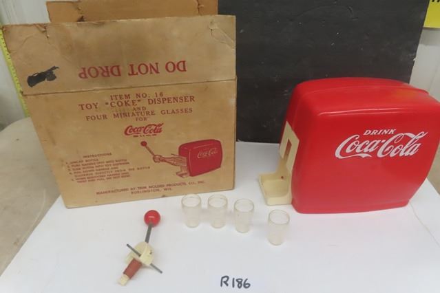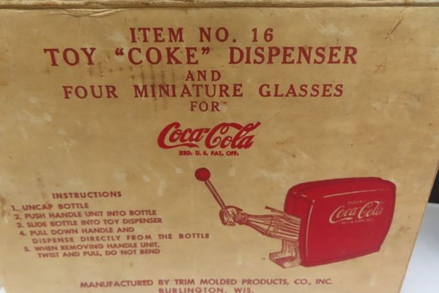 Coca-Cola Toy Dispenser with Glasses - Plastic , Trim Molded Products Inc. - In Original Box
