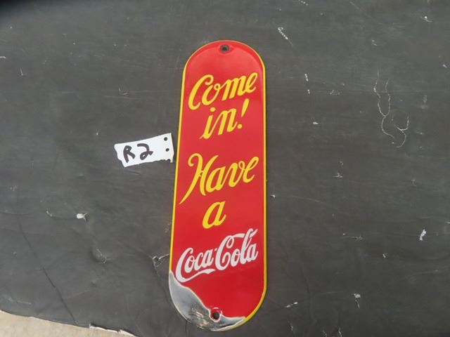 Coca-Cola Vintage Porcelain Palm Press ' Come in ' 3.5" x 12"