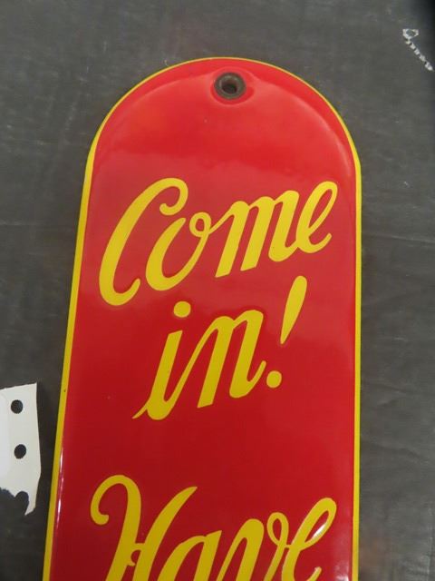 Coca-Cola Vintage Porcelain Palm Press ' Come in ' 3.5  x 12