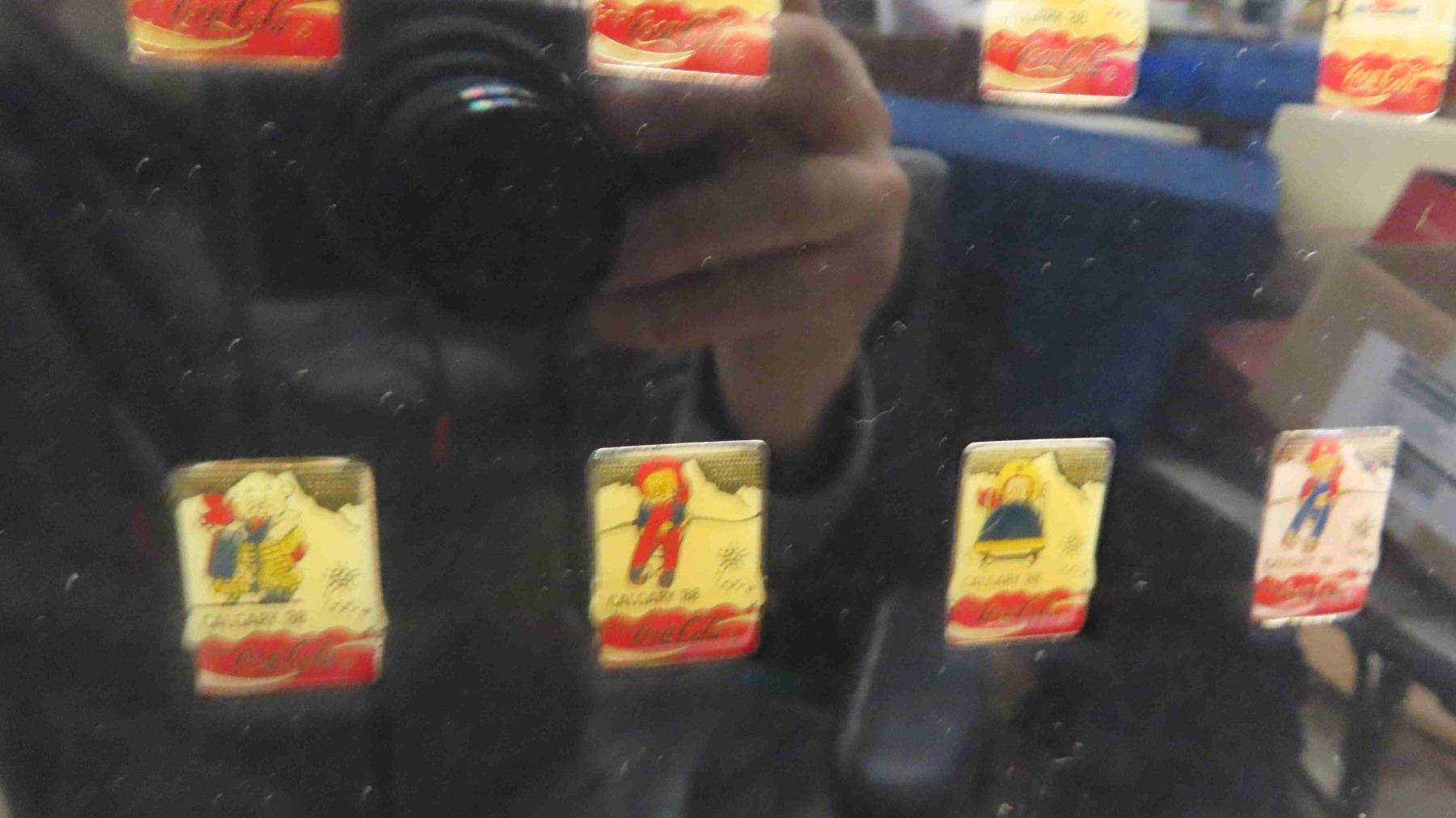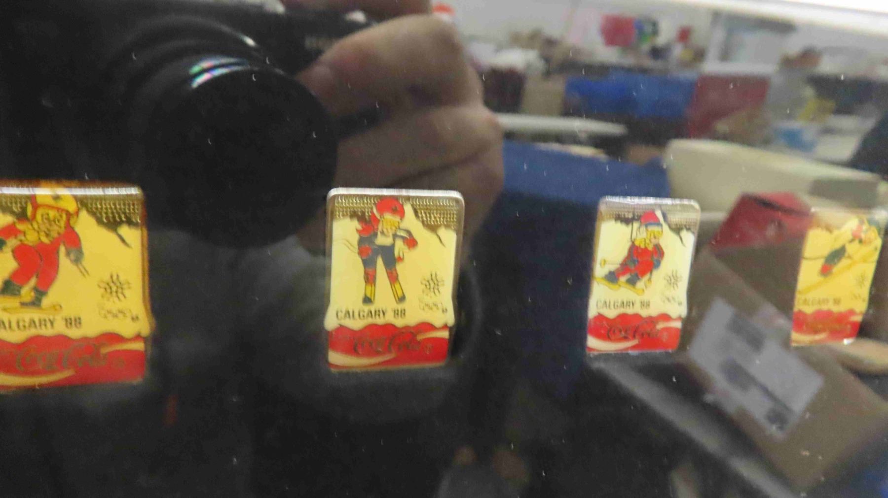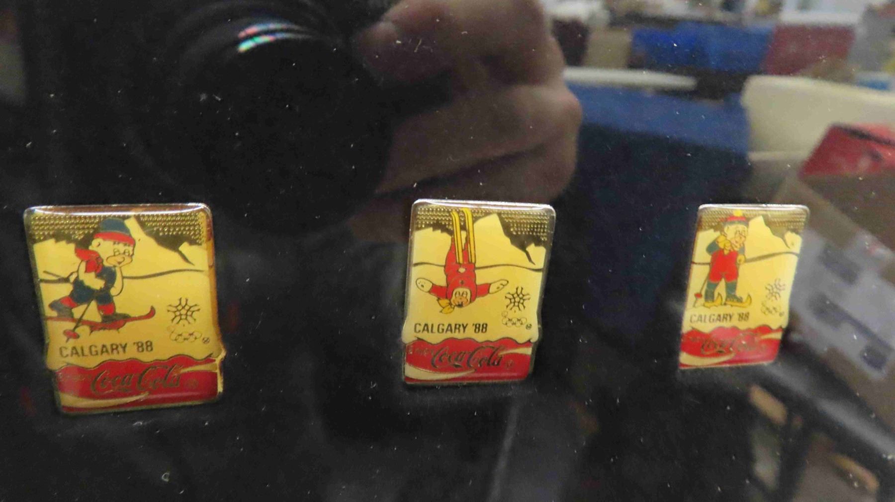 CocaCola Collector Edition XV Winter Olympic Games Calgary 1988 Framed Pin Display 10'' x 20''