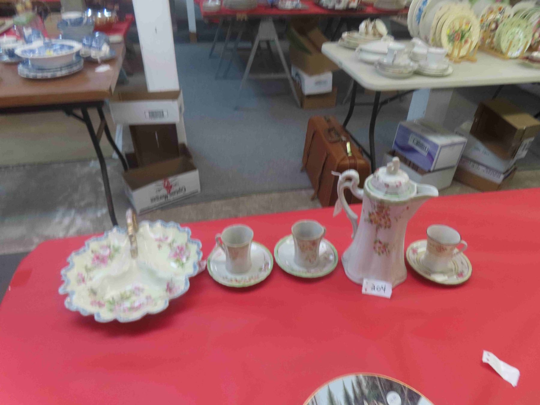 Cocoa Set Hand Painted, Coffee Pot, 3 Cups + Saucers