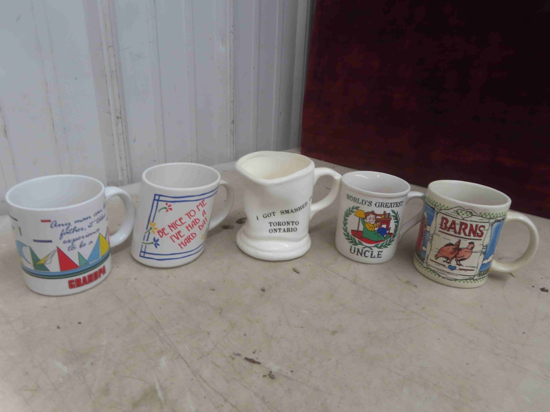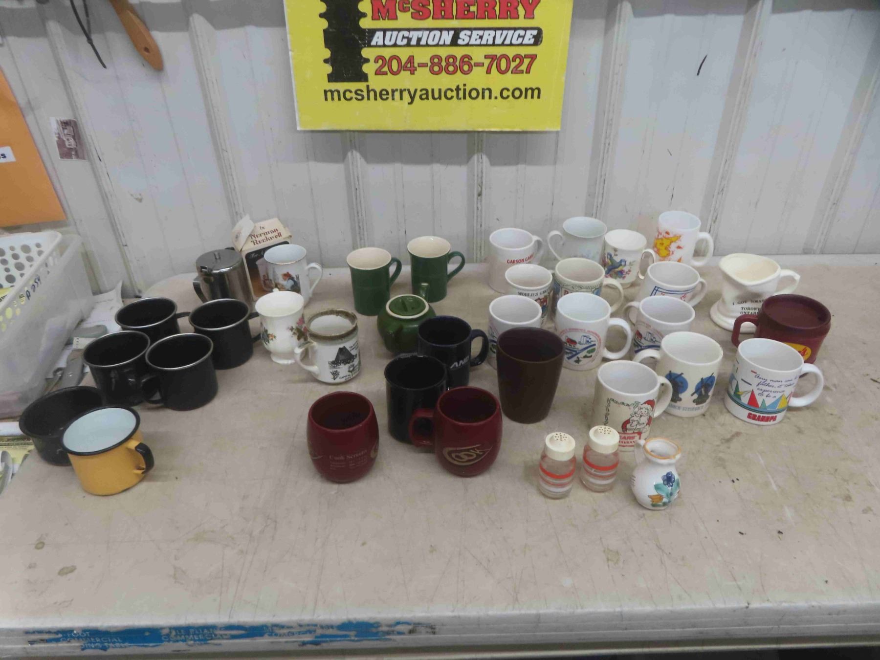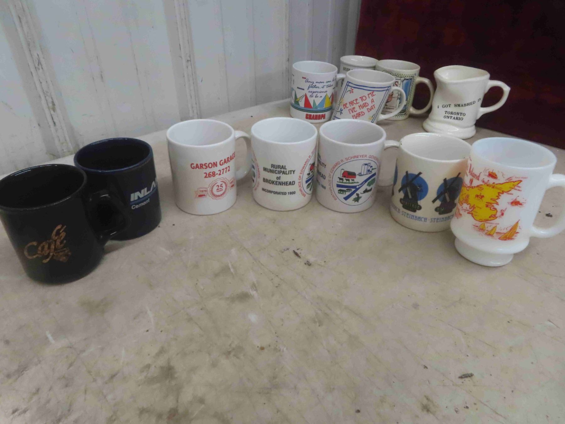 Coffee Mugs Some with Slogans/Advertising, 6 Tin Cups & More