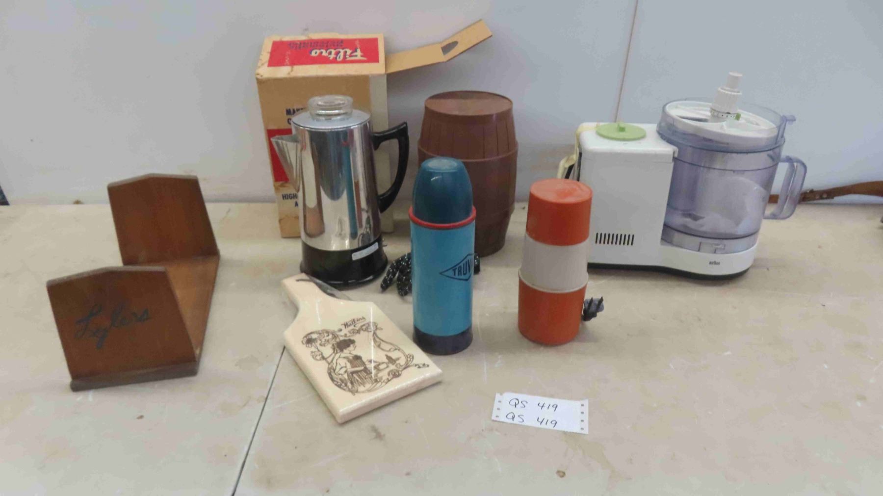 Coffee Perculator with Box, Braun Food Processer, Thermos