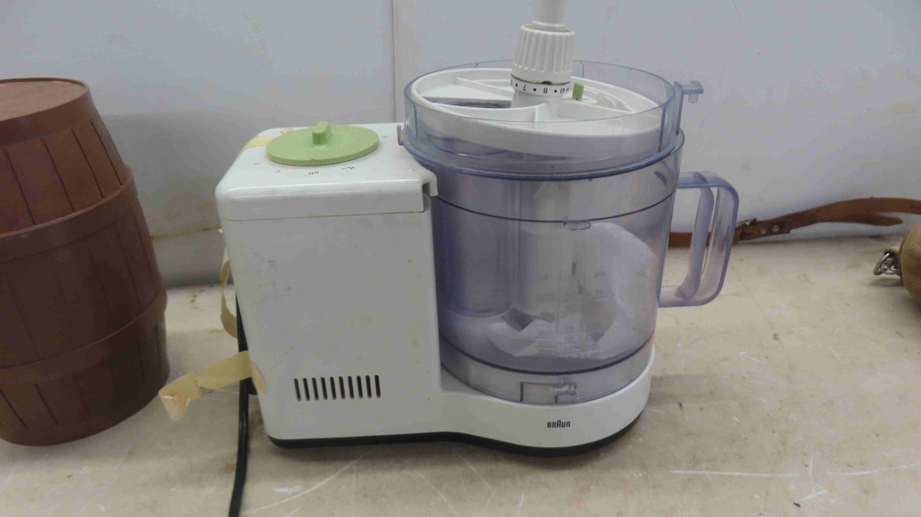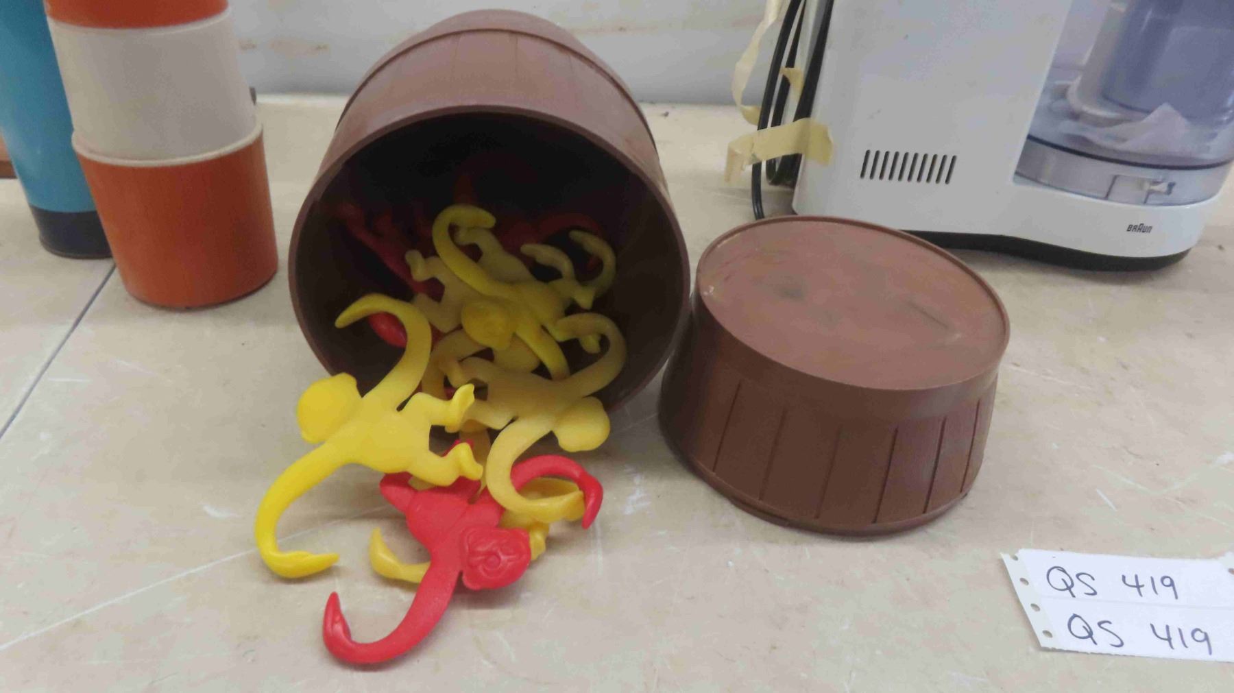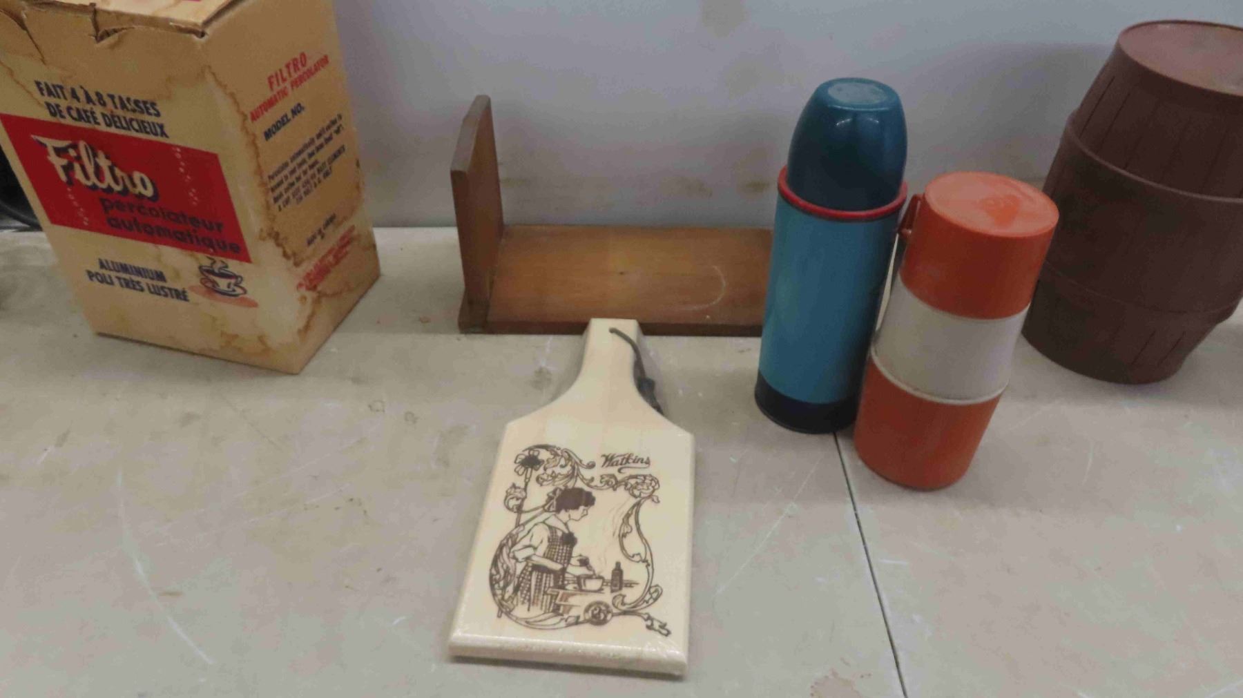 Coffee Perculator with Box, Braun Food Processer, Thermos , Barrel of Monkeys