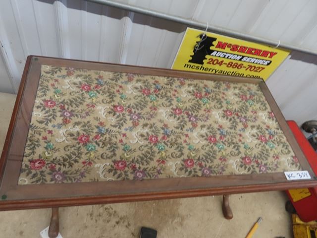 Coffee Table w Tapestry Design Under Glass 17.5" X 34.5" x 18" D