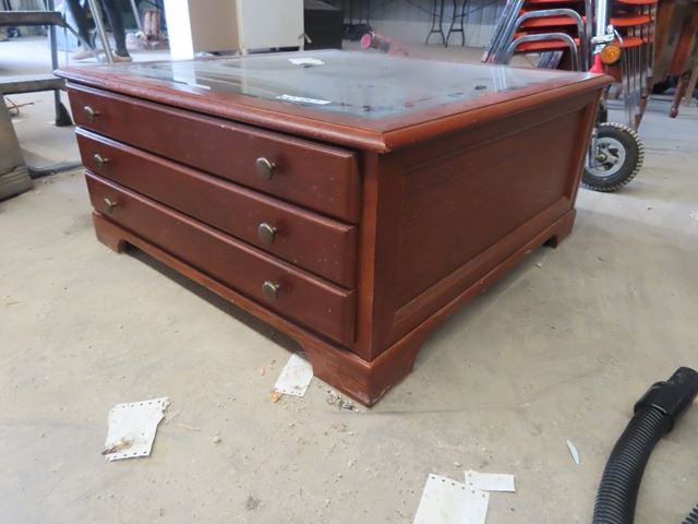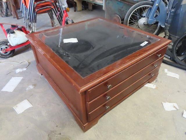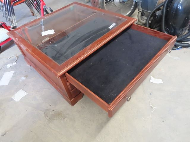 Coffee Table w Top Display & Drawer 16" X 35" x 35"
