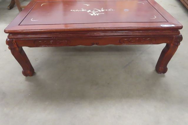 Coffee Table with Pearl Style Inlay + Carved Legs 18"×24"×47"