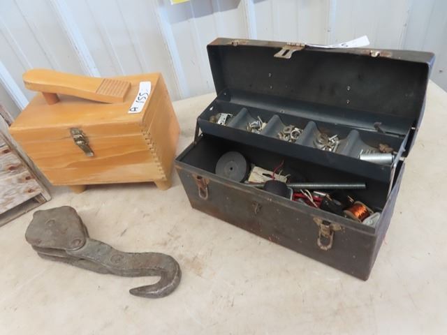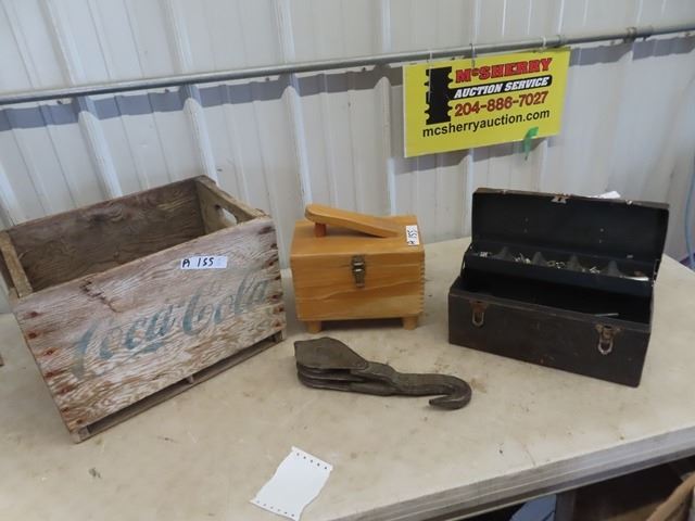 Coke Crate, Shoe Polish & Case, Metal Tool Box, Pulley & Hook