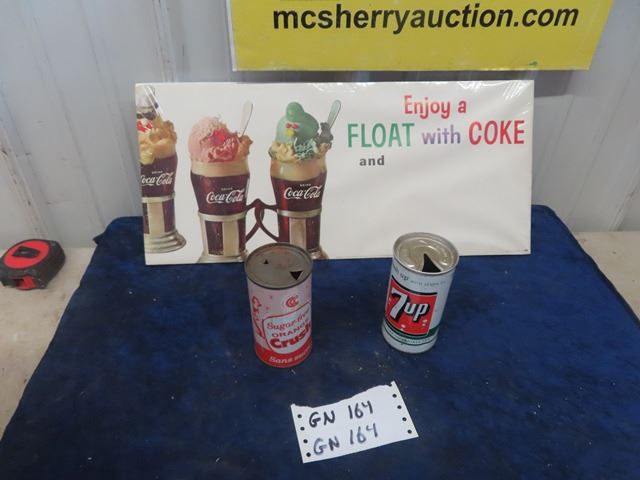 Coke Paper Advertising 9"x 20" , 2 Pop Cans - 7Up+ Orange Crush