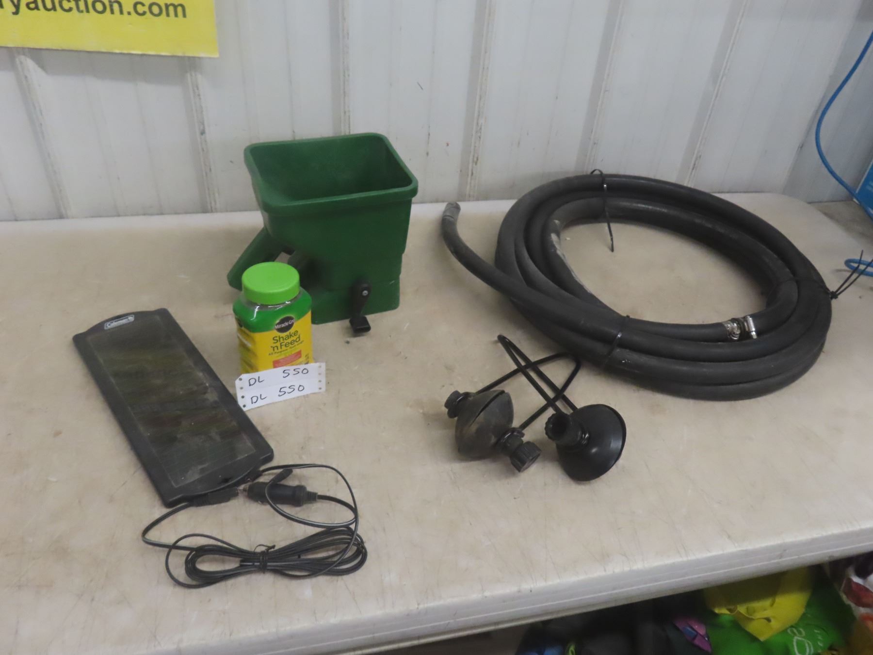 Coleman 2.5 Watt Solar Panel, Fertilizer/ Seed Broadcaster, Rubber Hose, Outbound Garven Hose Adapter