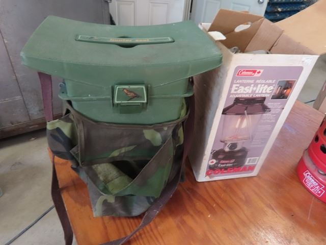 Coleman 3000 BTU Heater, Coleman Lantern, Gas Pail, Hunter Seat