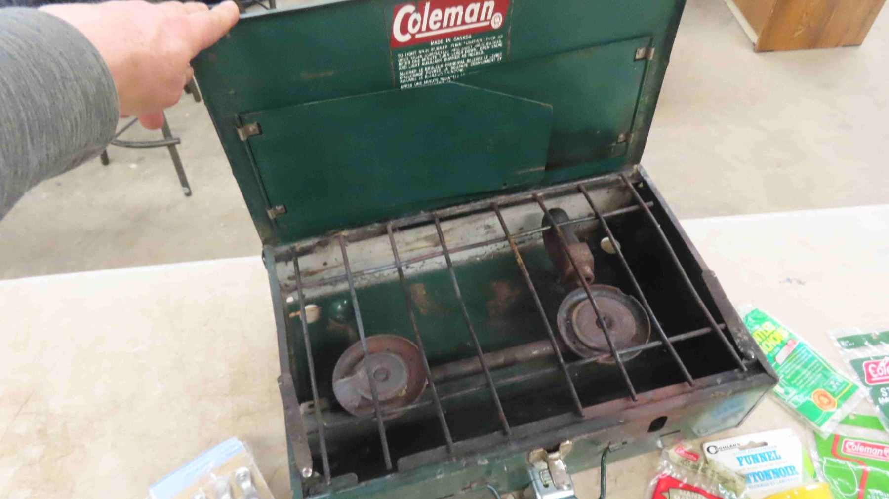 Coleman 421 Stove, Hardware, Handle Straps, Padlocks, Coghlan Funnel, plus more