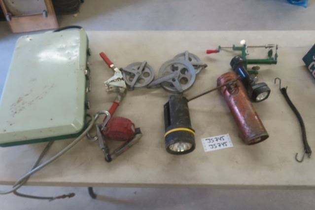 Coleman Camp Stove, Fuel Tank, Flashlights, Apple Peeler,