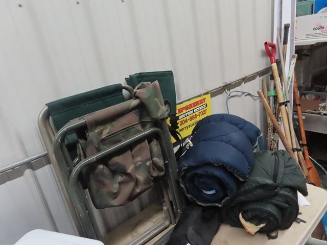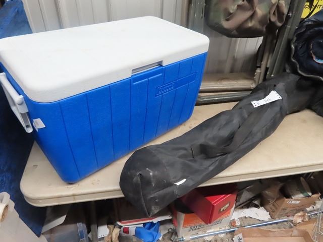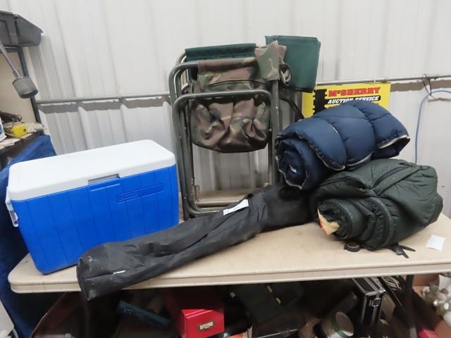 Coleman Cooler - 3 Folding Yard Chairs, 3 Sleeping Blankets