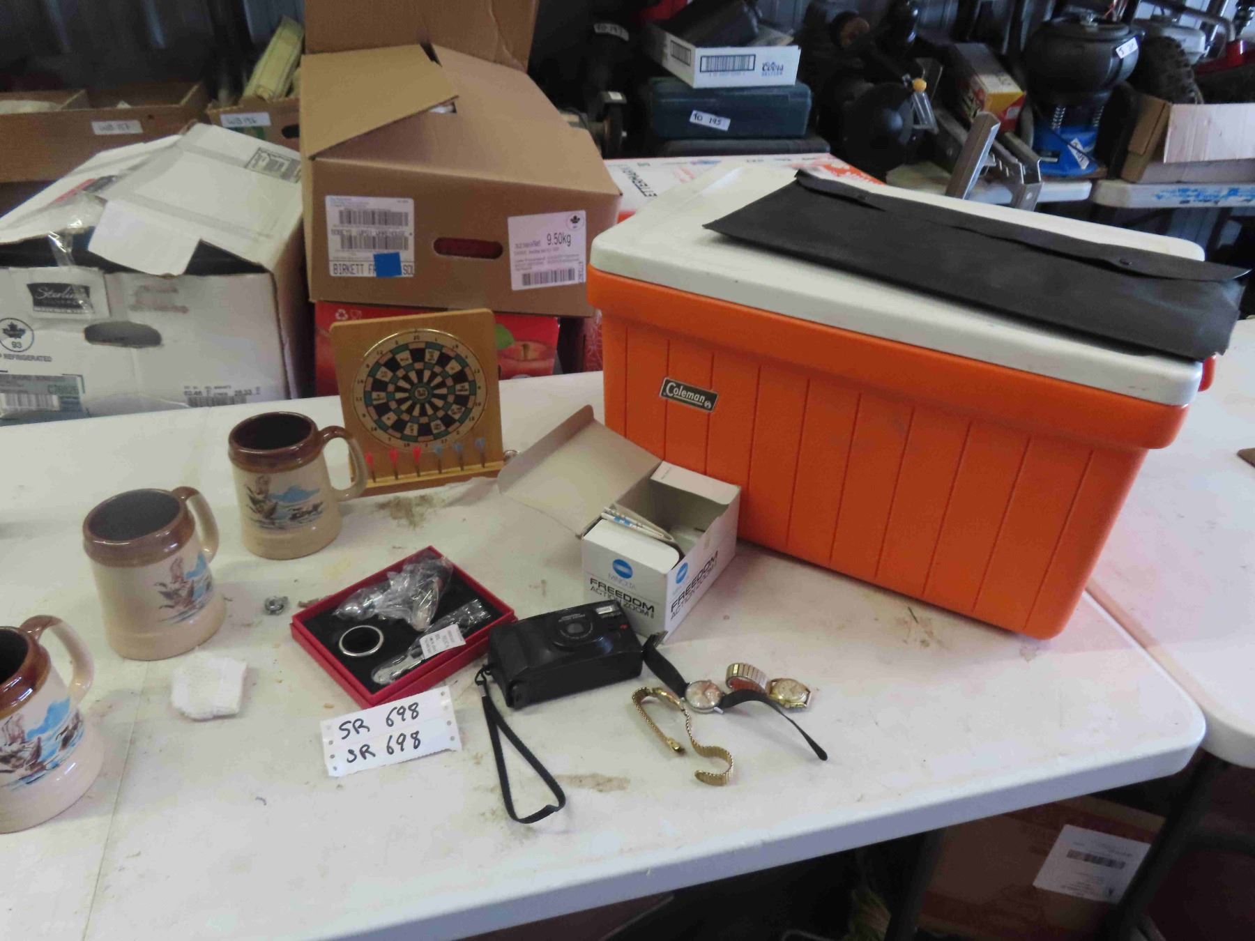 Coleman Cooler, Mini Dart Board, Mugs, Minolta Camera, Men's Watch