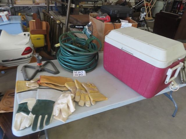 Coleman Cooler, Work Gloves, Garden Hose, Sprinkler