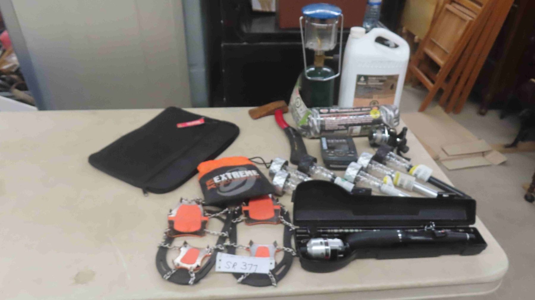 Coleman Lantern, 3.78 L Kerosene, New 1/2'' Camo Rope, 2 Fishing Reel, 1 Pocket Rod, Solar Lights & More