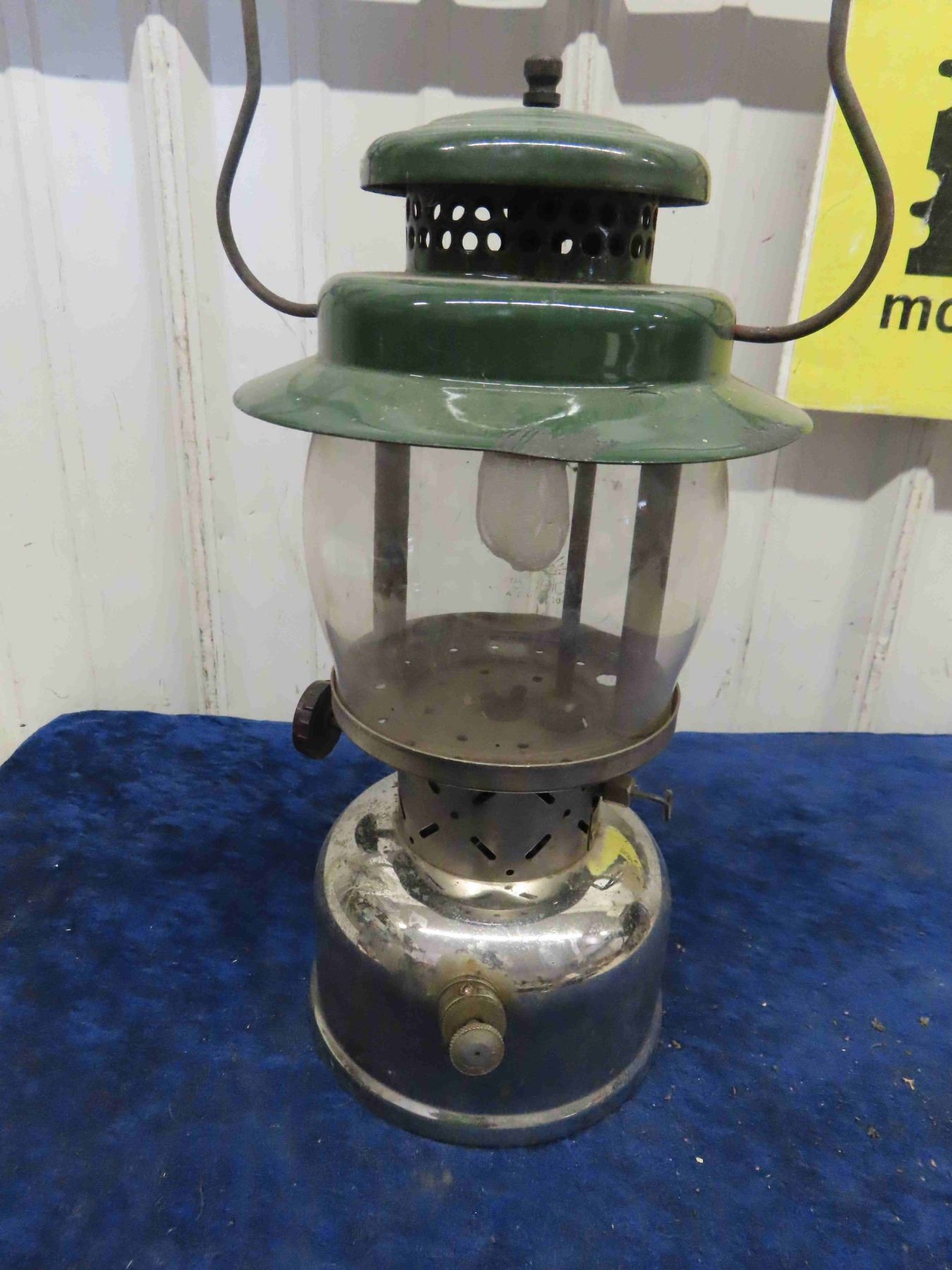 Coleman Model 236 Green Top, Chrome Bottom Coal Oil Lamp