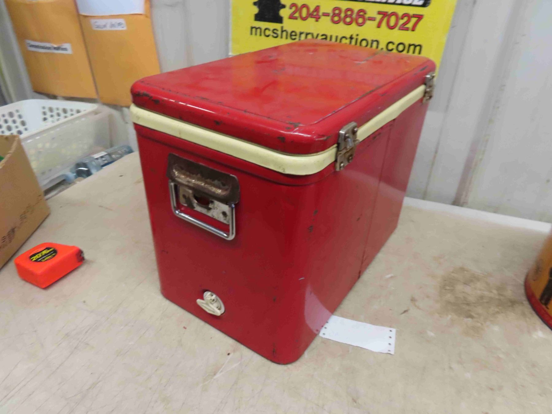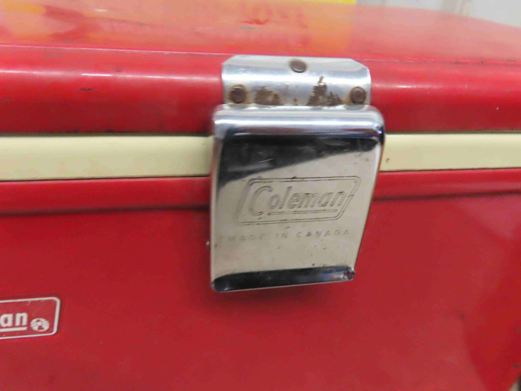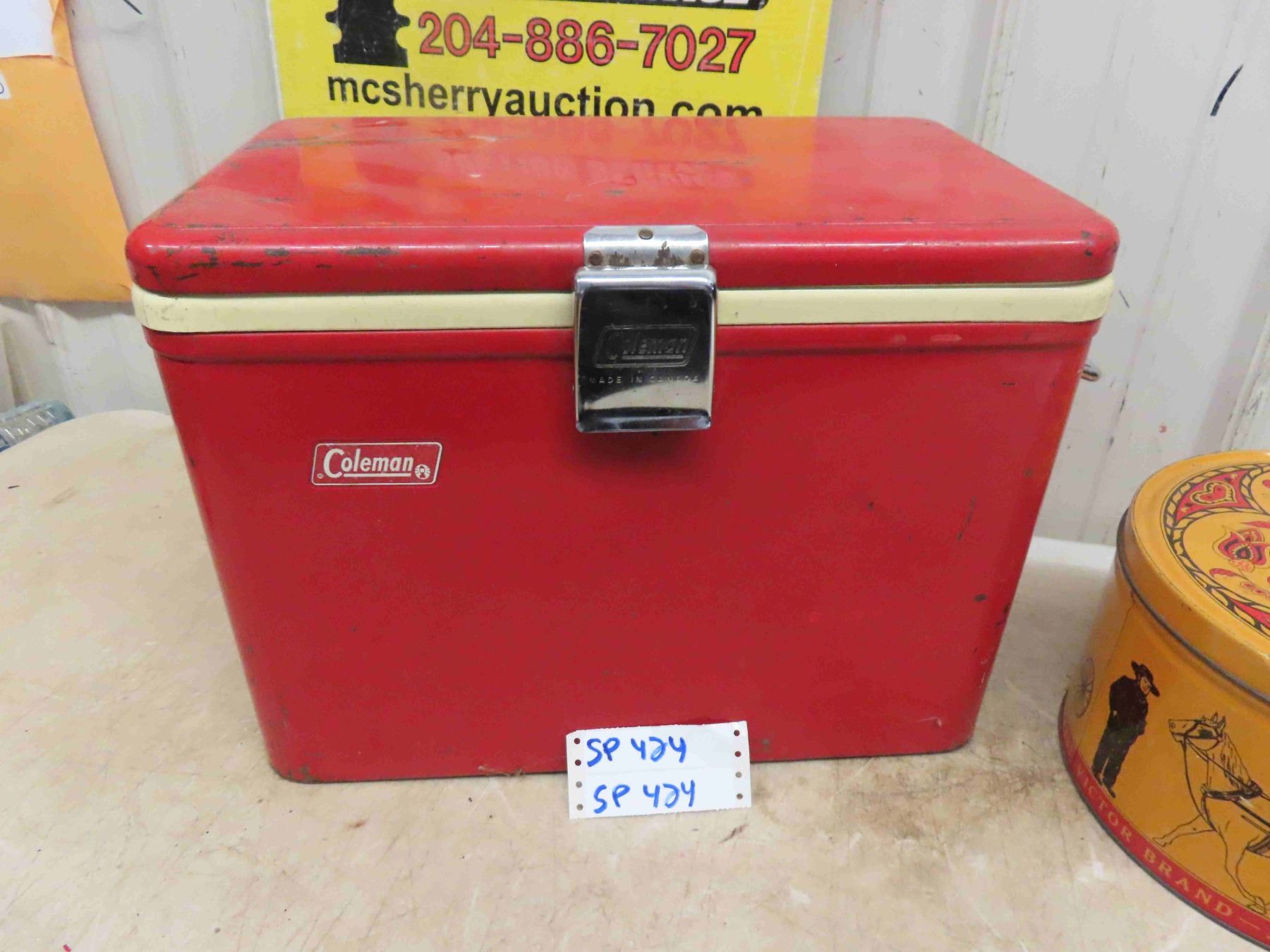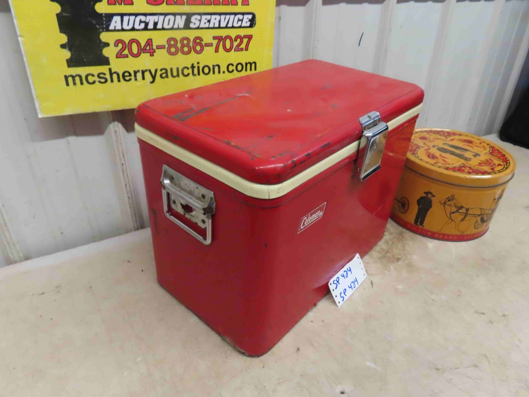 Coleman Picnic Cooler 13 1/2'' x 18'' x 10'' , Sturgis Pretzel Tin with Amish Graphics 6 1/2'' High x 10'' Across