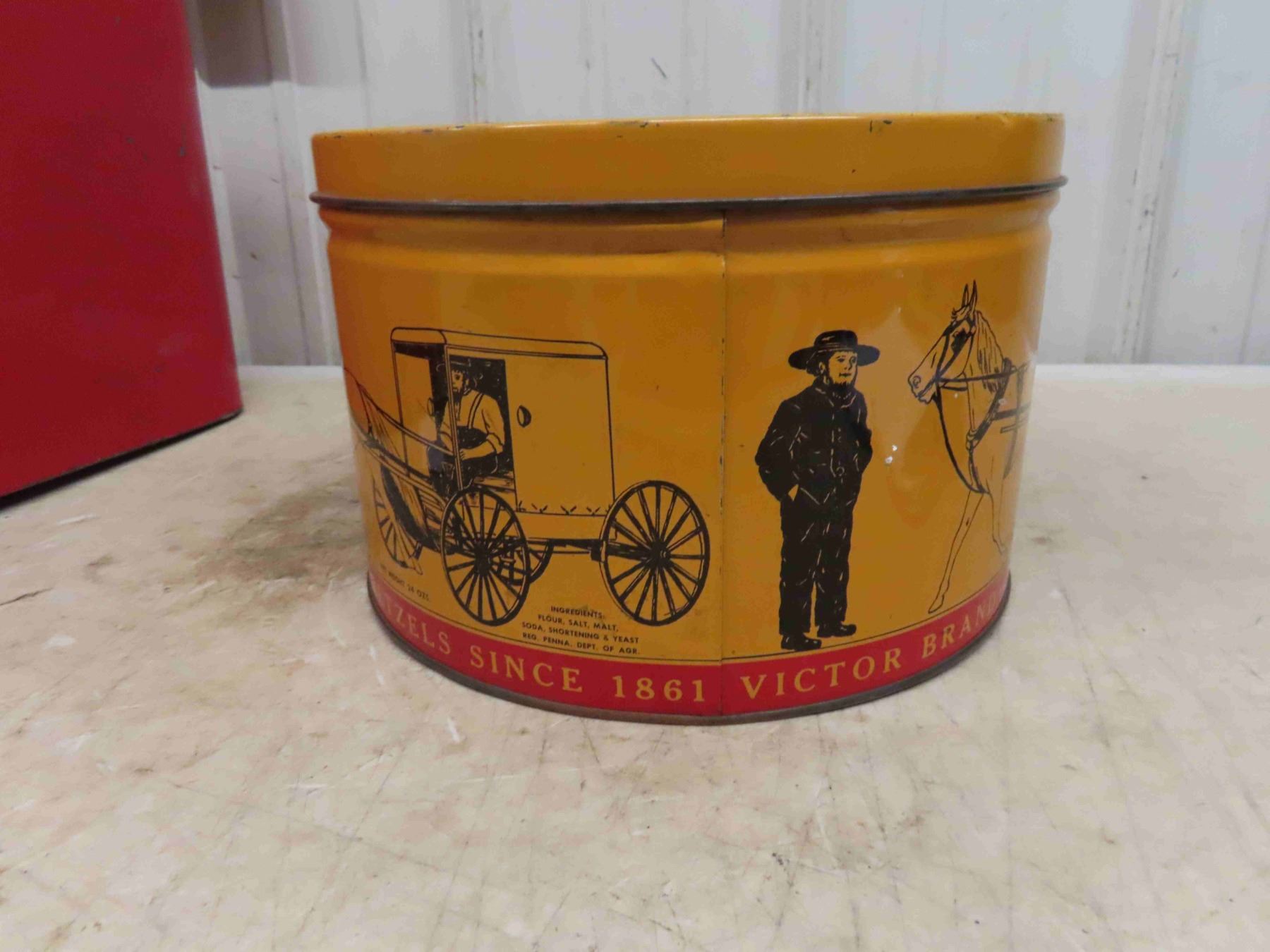 Coleman Picnic Cooler 13 1/2'' x 18'' x 10'' , Sturgis Pretzel Tin with Amish