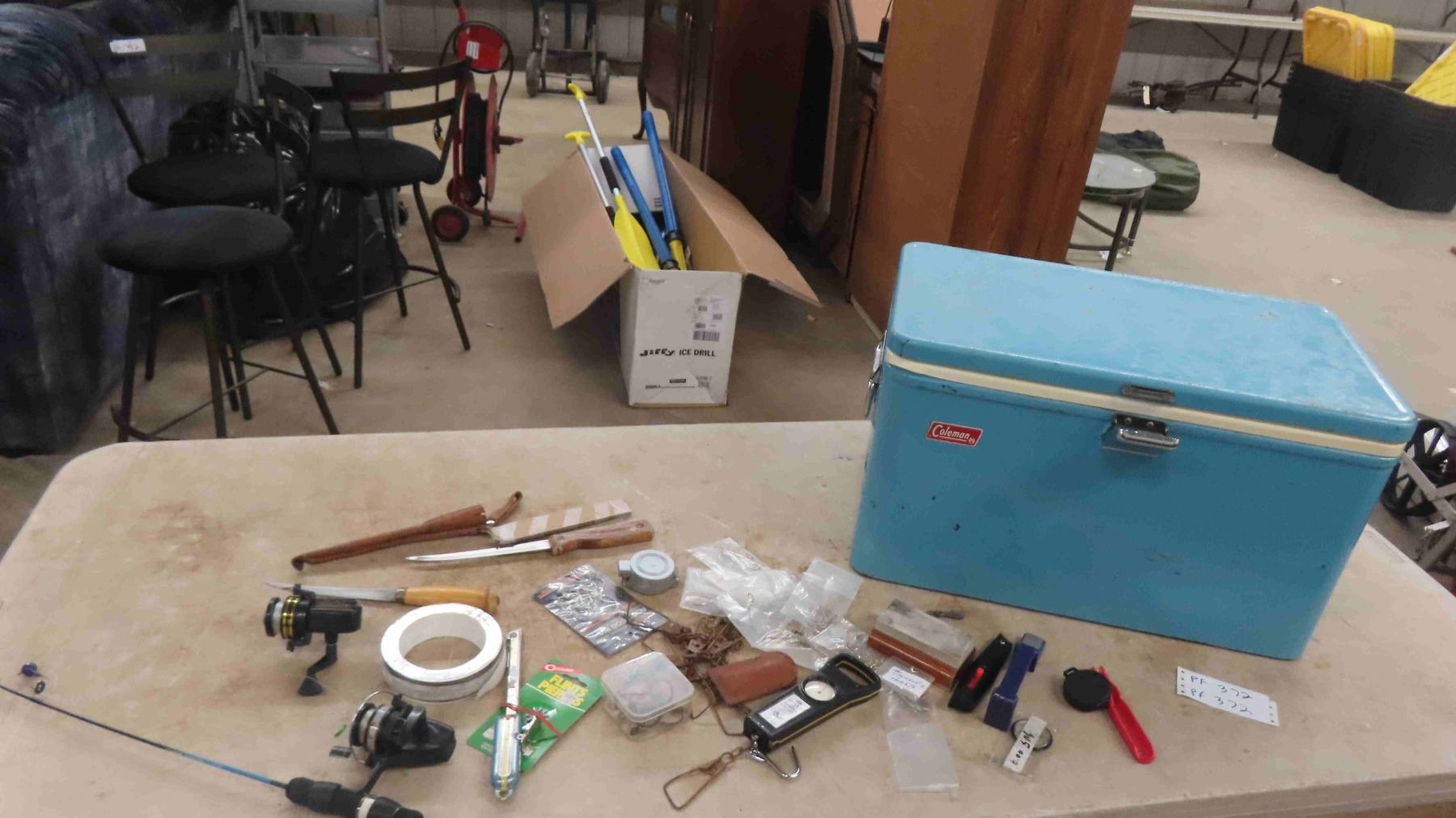 Coleman Picnic Cooler, Fishing Tackle, Fillet Knife, Ice Fishing Rod, plus more