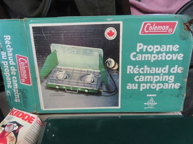 Coleman Propane Camp stove Model 5424B701 Plano Tackle Box - Both New & Kidde Fire Extinguisher