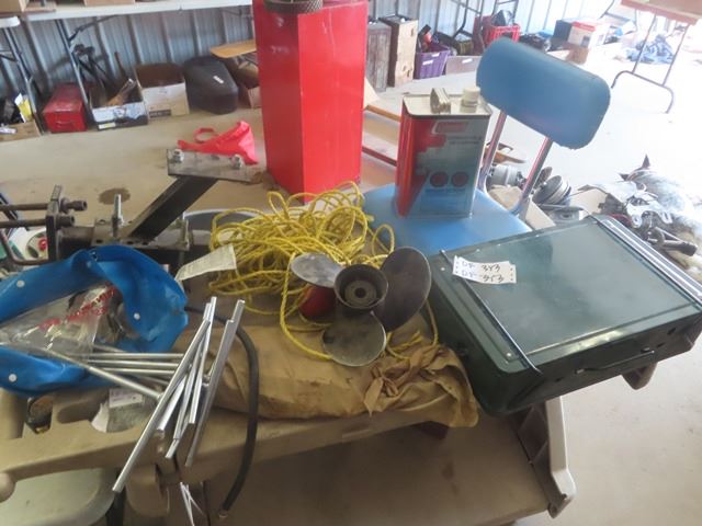 Coleman Stove, Boat Seat, Propeller, Auto Spare Tire Mounts