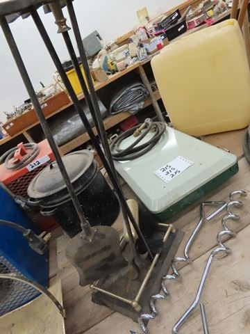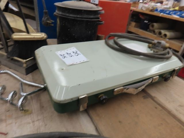 Coleman Stove, Water Jug, Canner, Fire Place Set