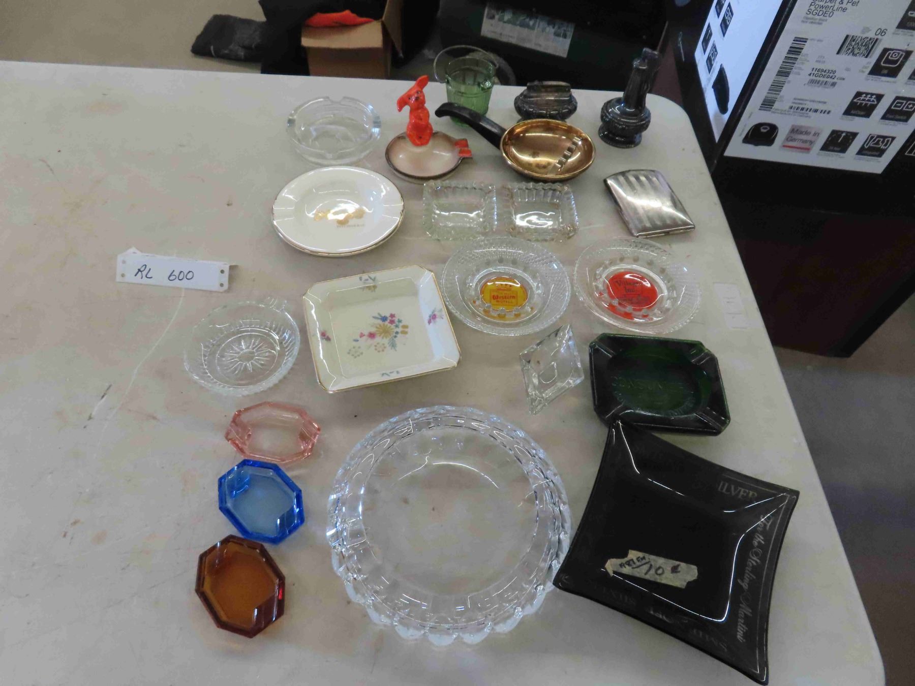 Collection of Ashtrays with Advertising , Decorative, 2 Vintage Lighters & Cigarette Case