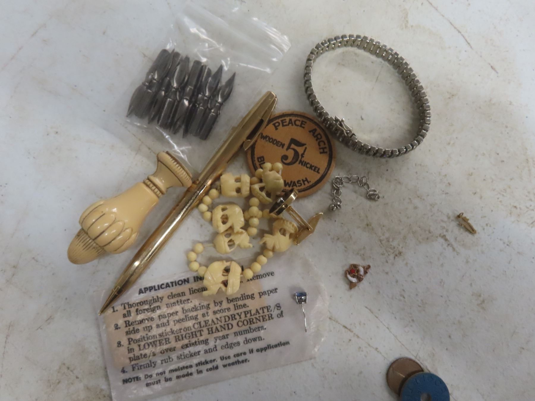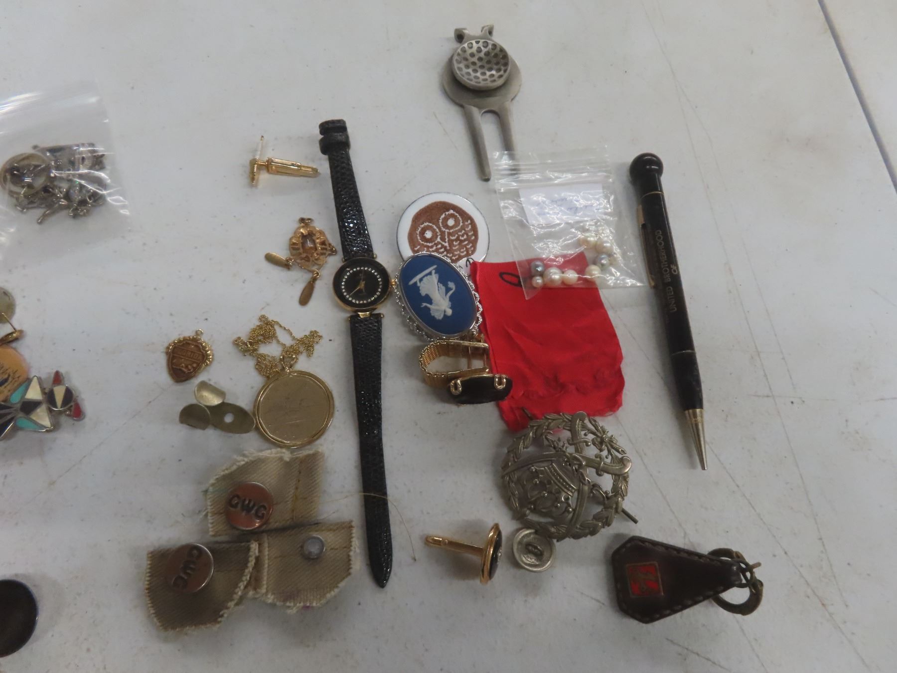 Collection of Bank Notes, Hat Badges, and Vintage Fashion Jewellery, and More