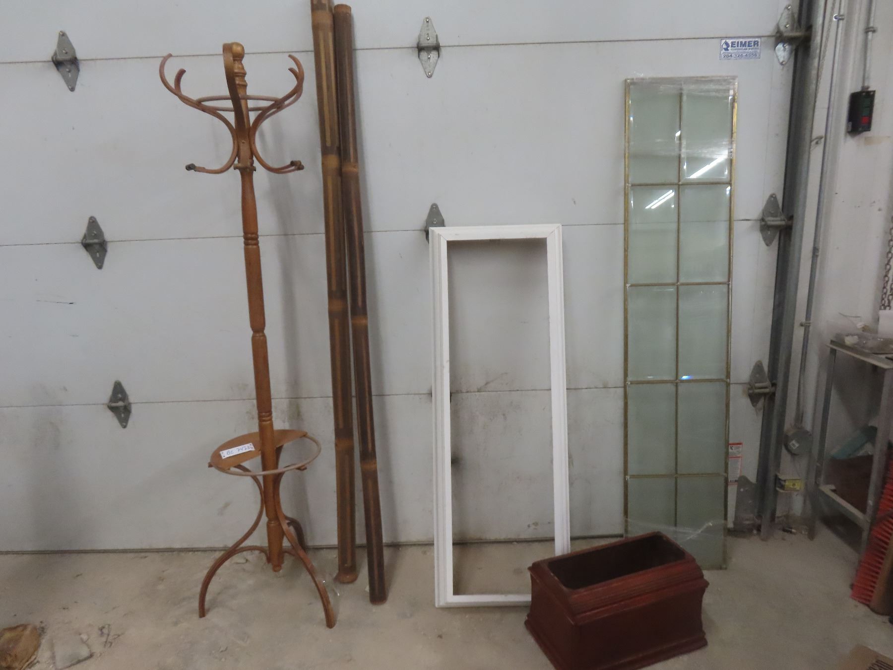 Colonial Coat/Hat Tree, Fluorescent Light Frame (2x4 Ft), Bamboo Poles, and Beveled Glass Window +