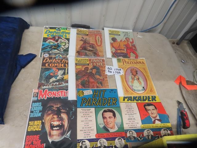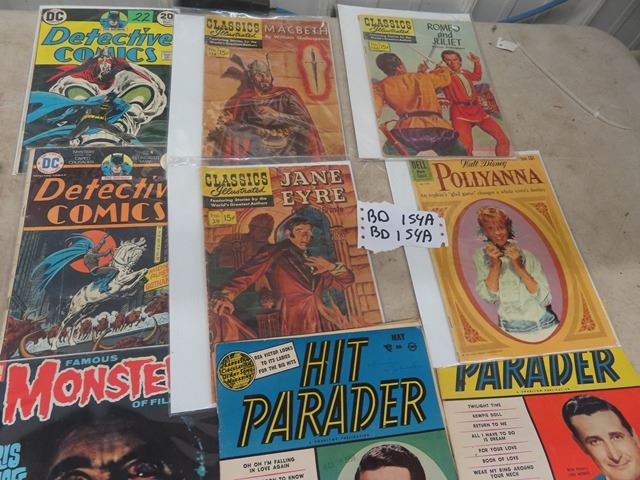 Comics- 15, 20 & 25 Cent- Batman, Classics Illustrated + Monsters of Film Book & 1950's Hit Parade Magazines plus more ...
