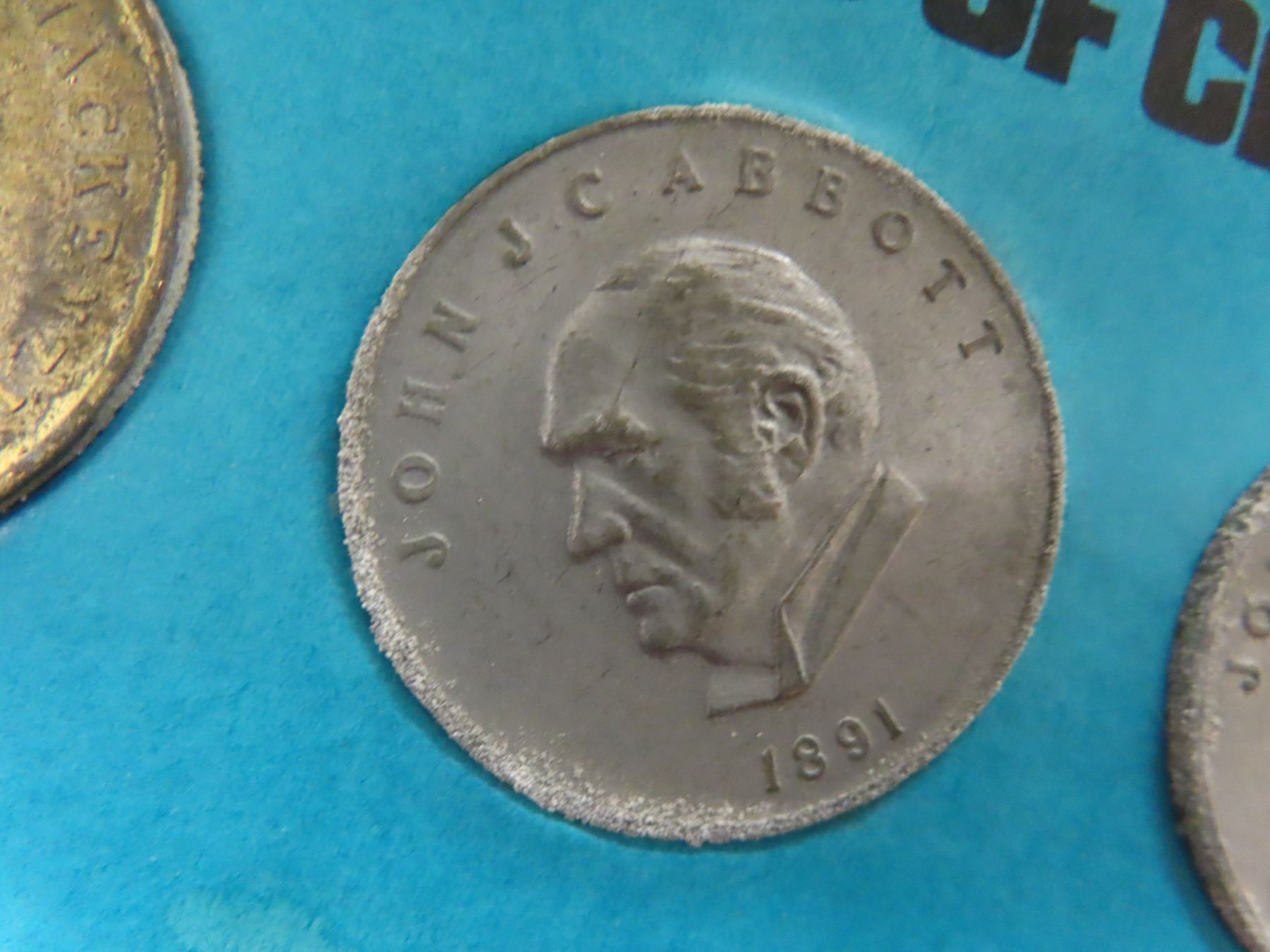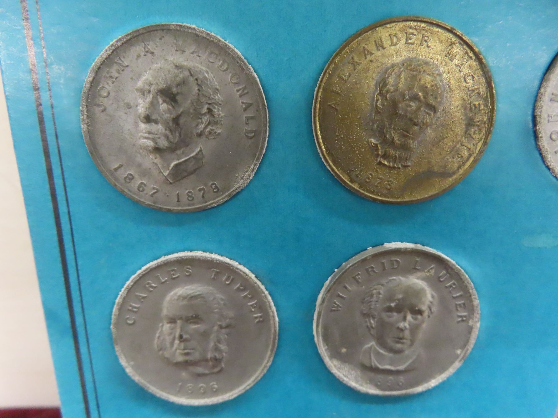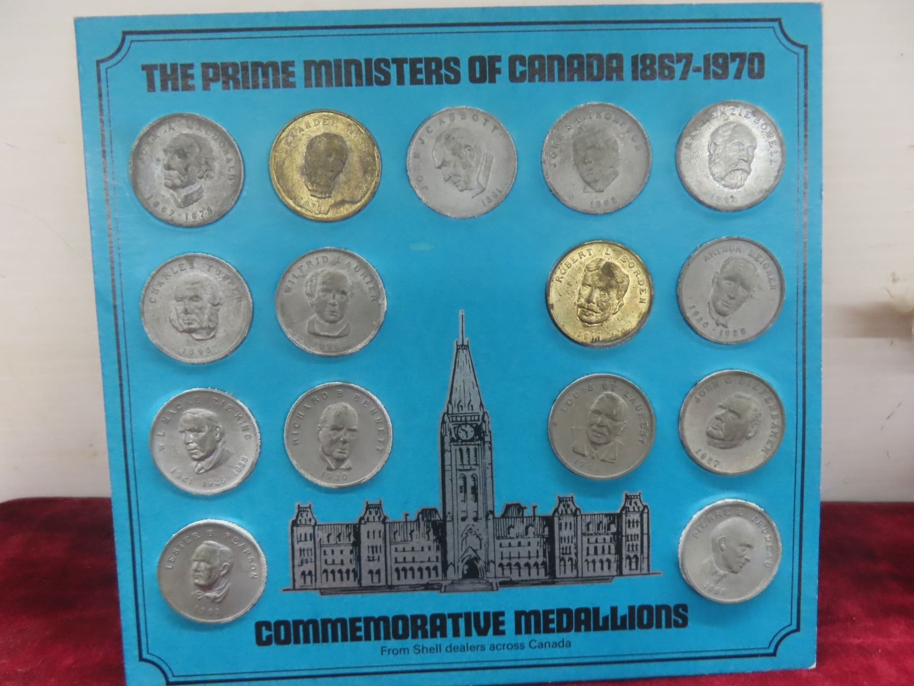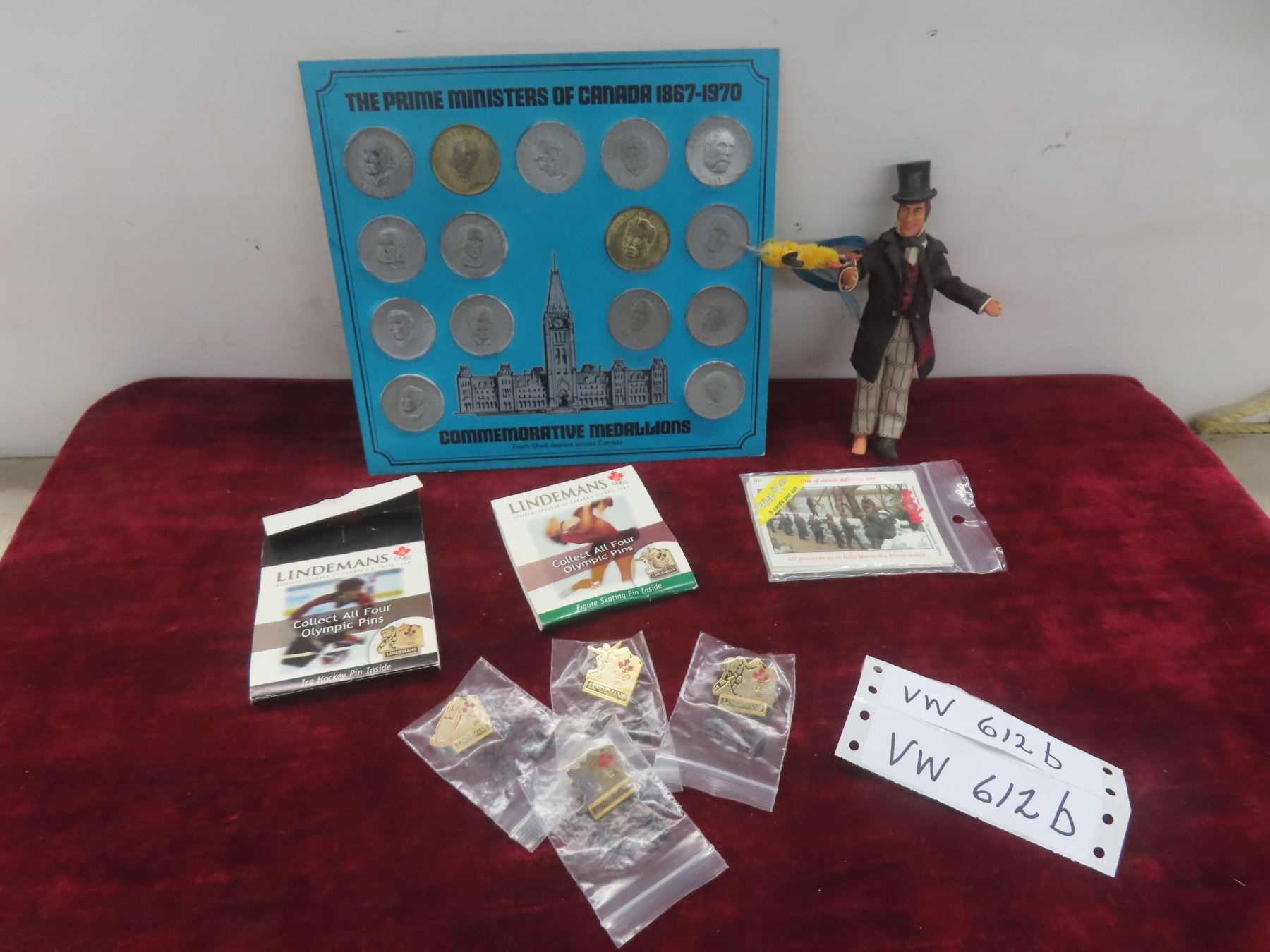 Commemorative Medallions — Prime Ministers Of Canada 1867–1970; 6x 2002 Olympic Pins.