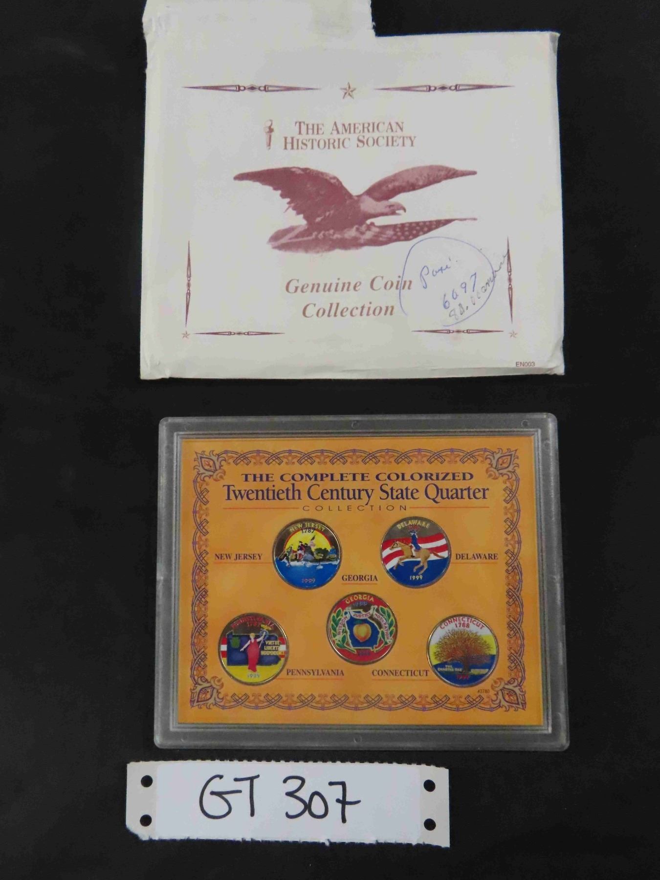 Complete Colorized USA 20th Century State Quarters Encapsulated with Envelope - American Historic Society