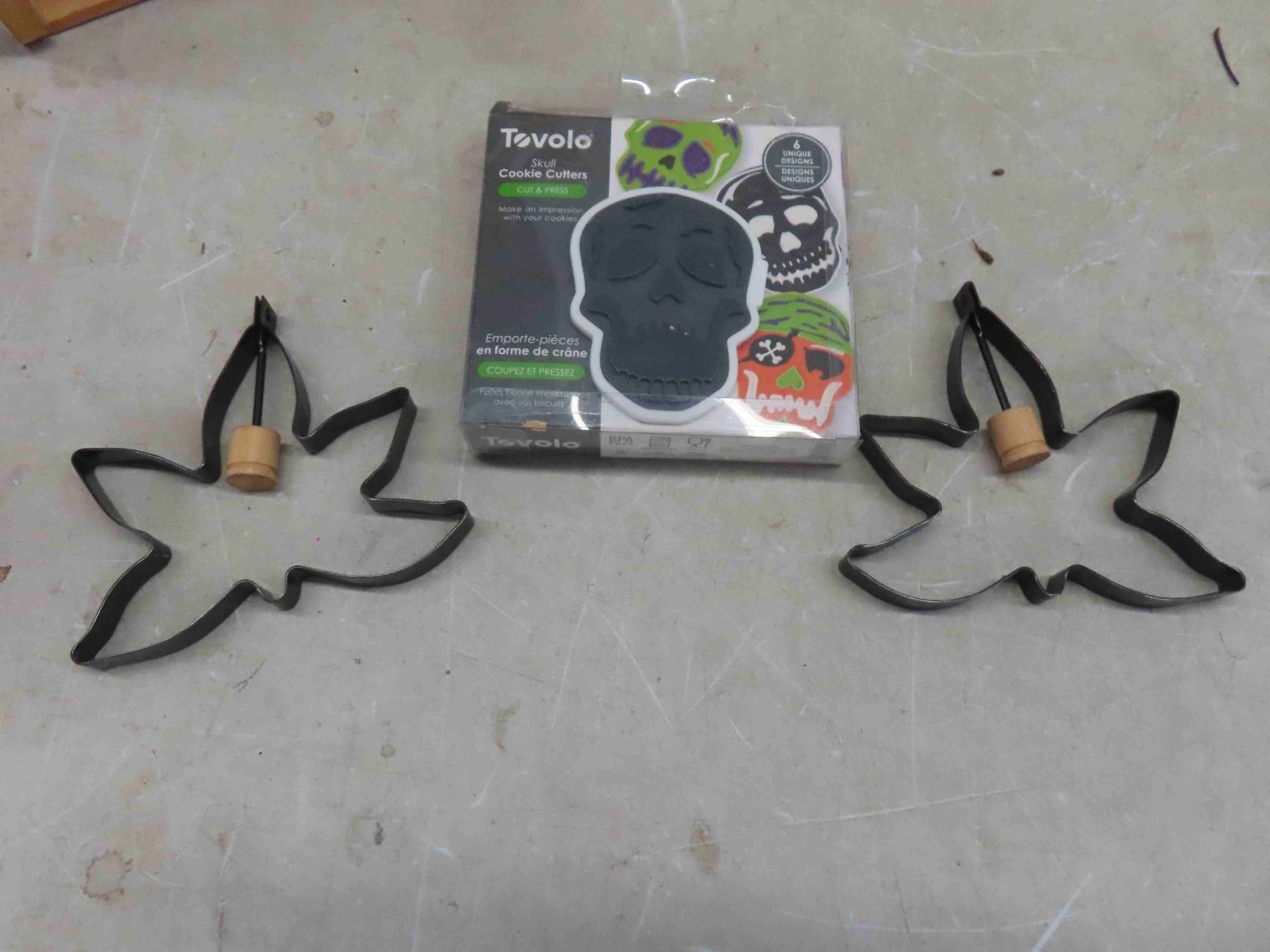 Cookie Cutters,New Skull Adjustable Pie Shields, Vintage Knife & Fork Set & More