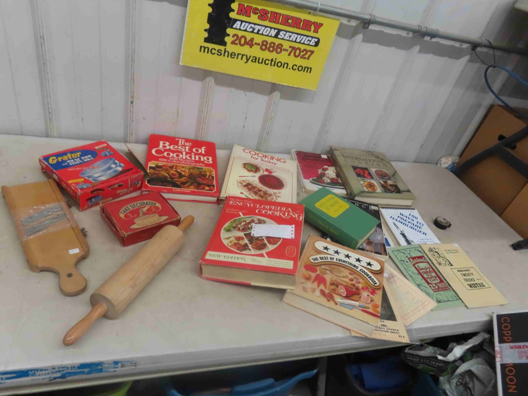 Cooks Books, Rolling Pin, Grader, Cake Decorator with Box, Pan Set with Box