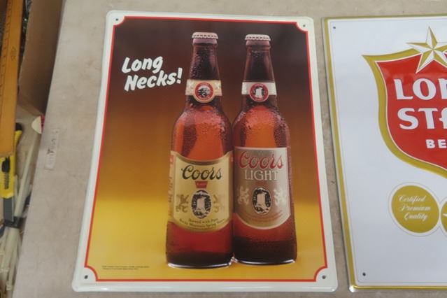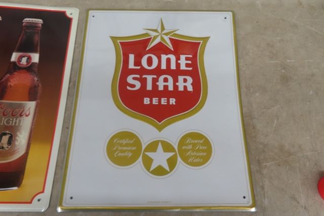 Coors Tin Sign, Lone Star Tin Sign both 16"×20"