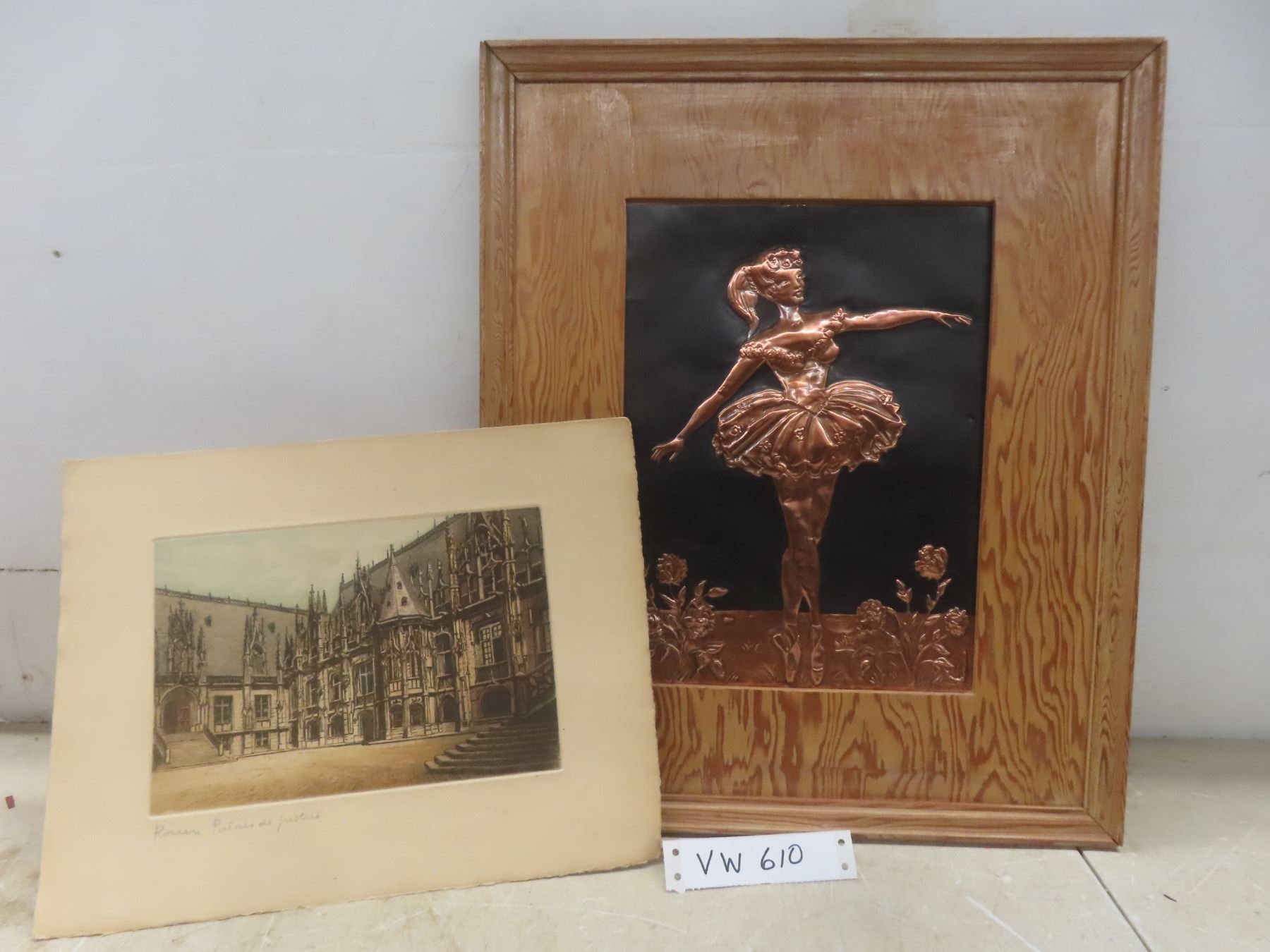 Copper Craft Style Framed Ballerina 18" x 15"; And Artwork Depicting Palais De Justice In France, 13" x 10".