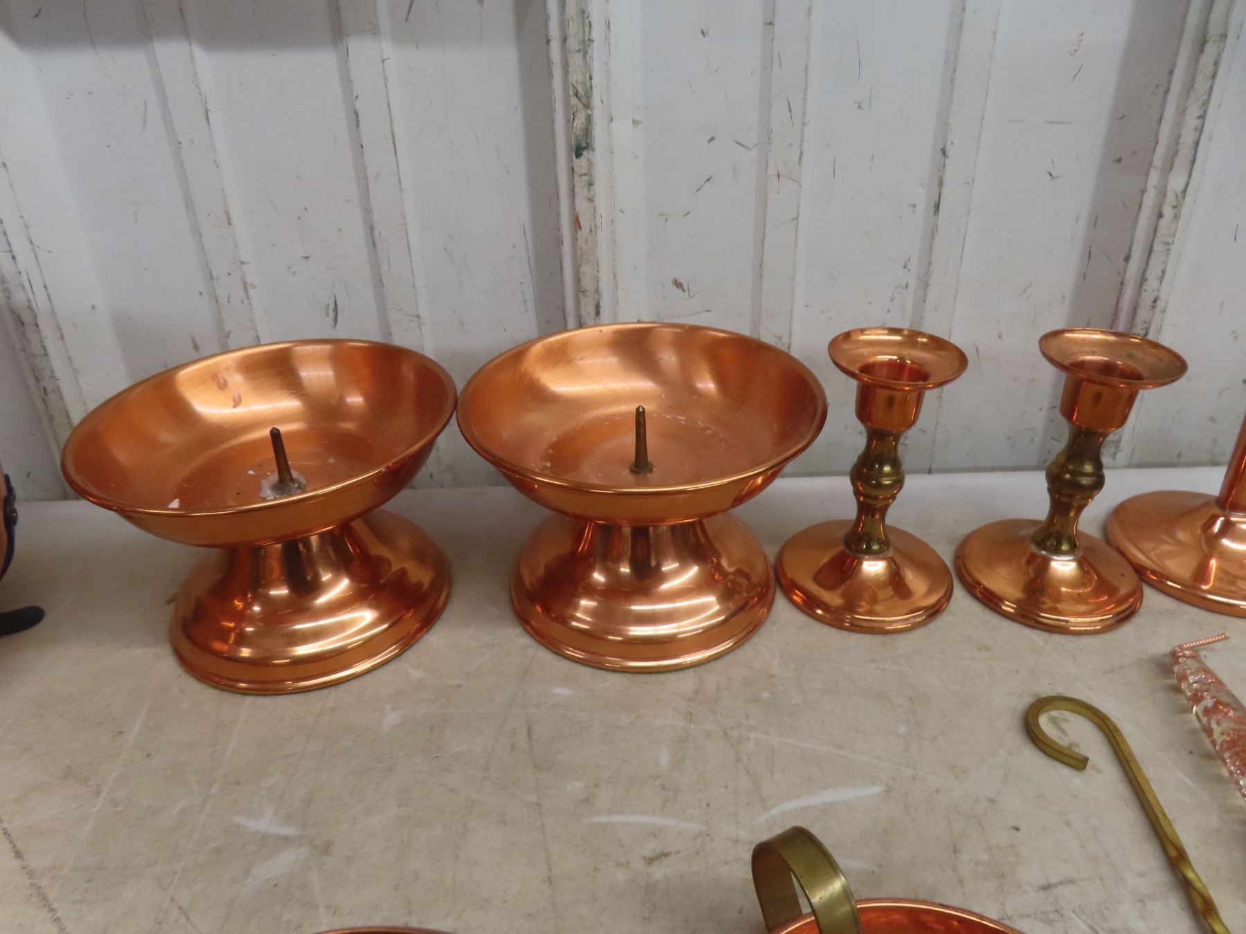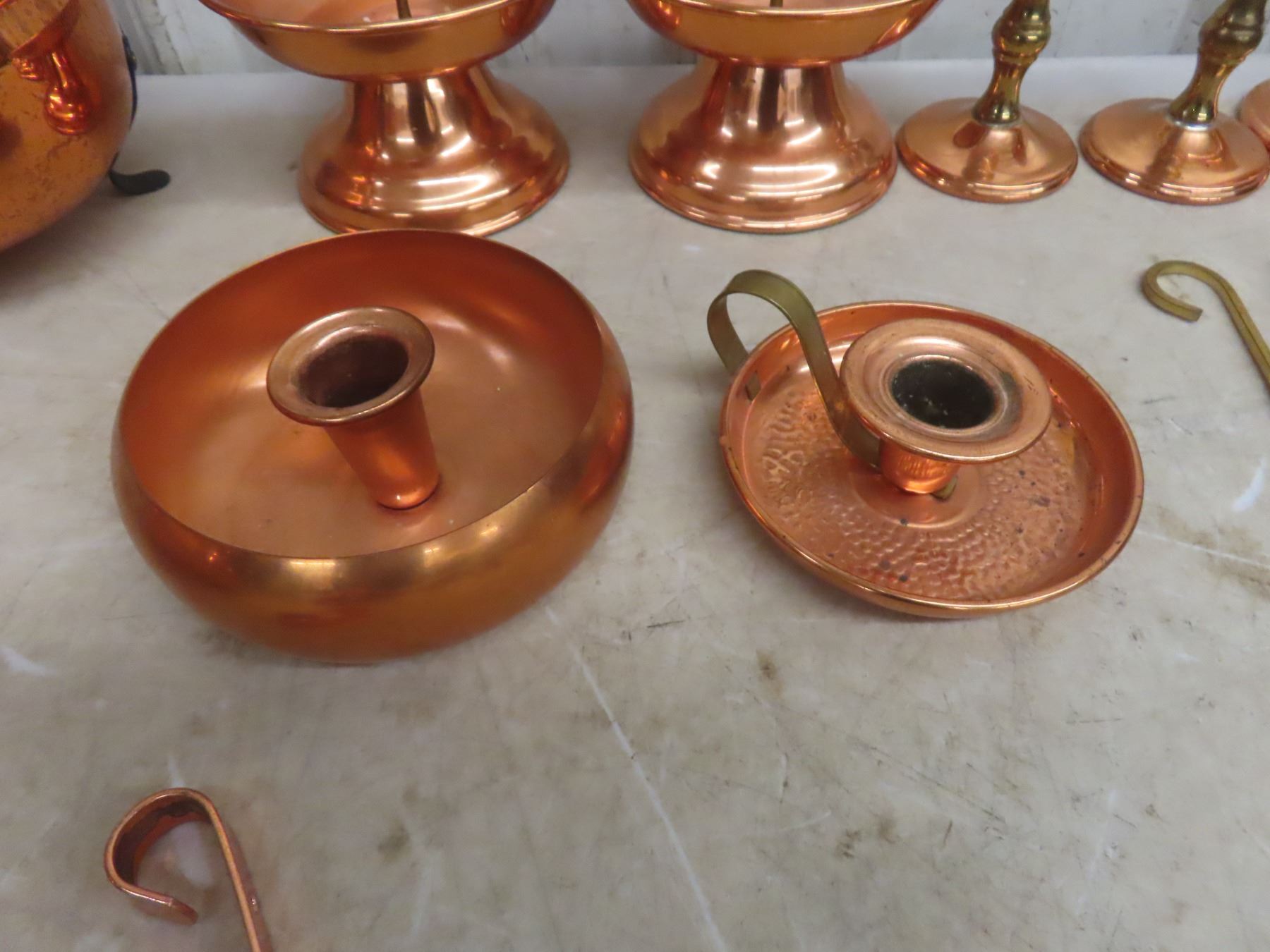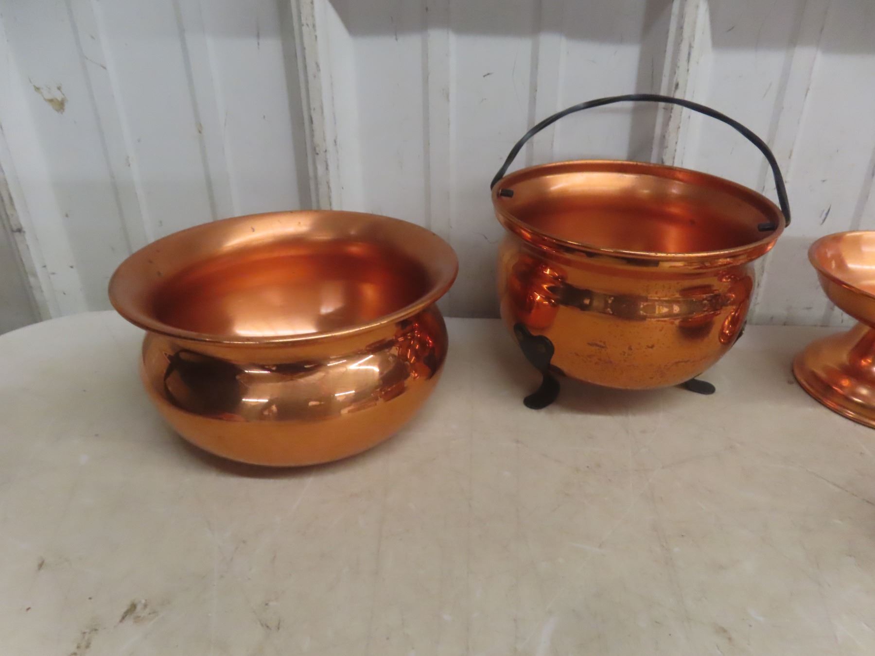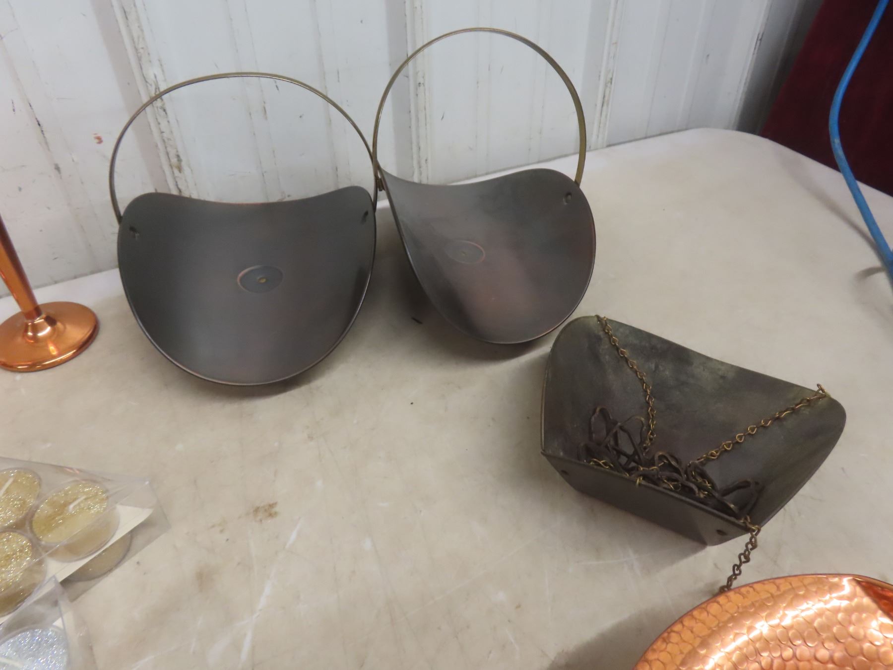 Copper Decor — Candle Holders, Napkin Holder, And Planters.
