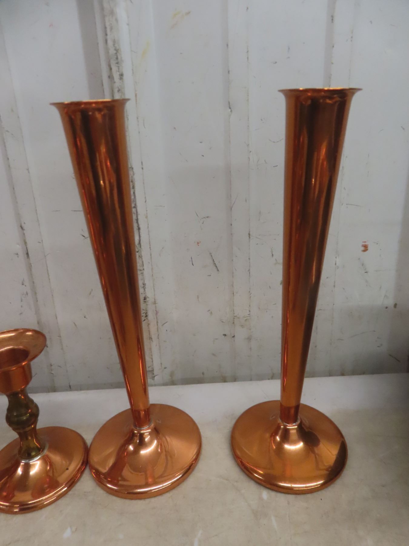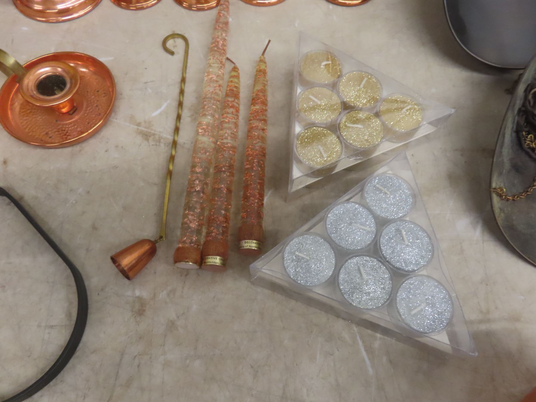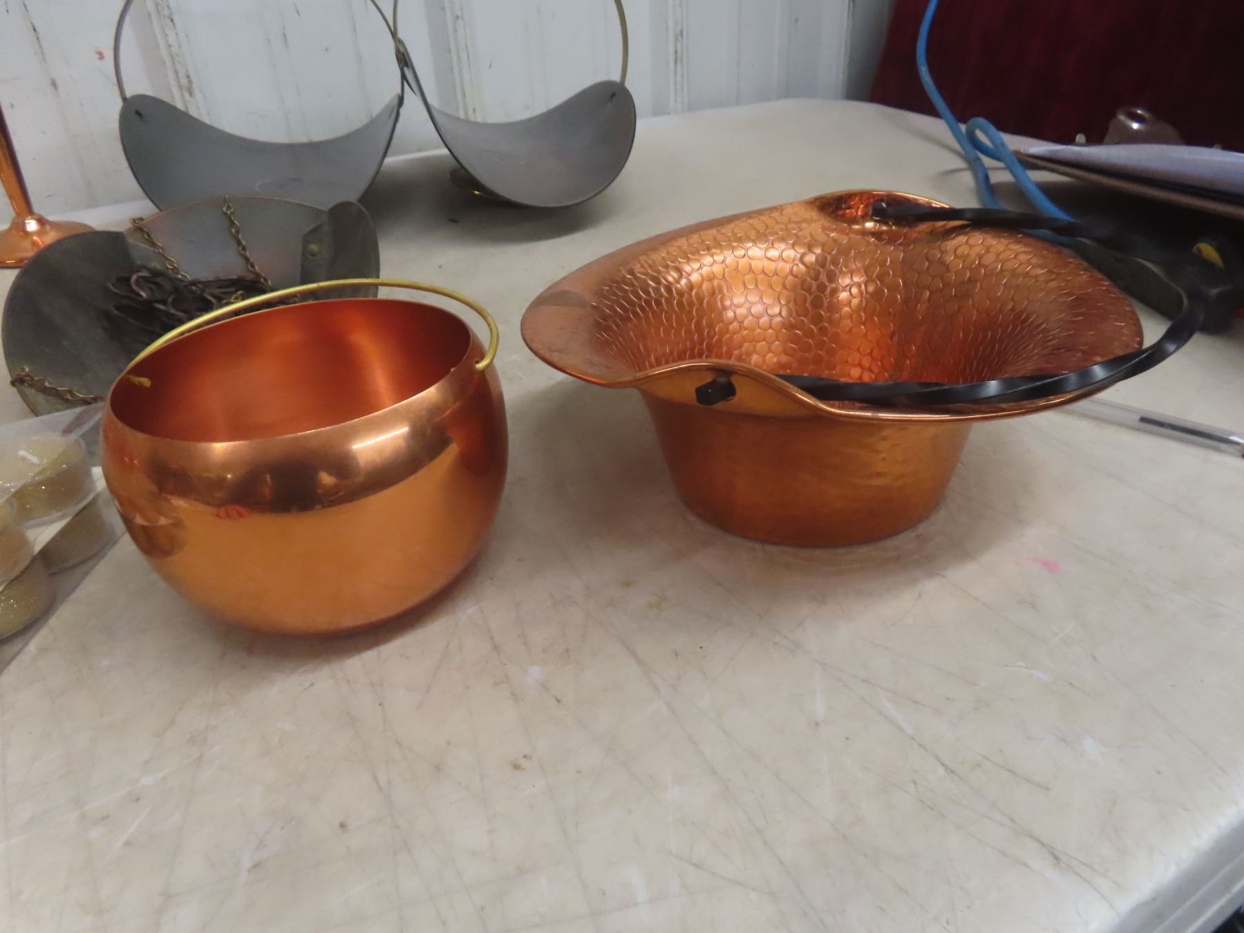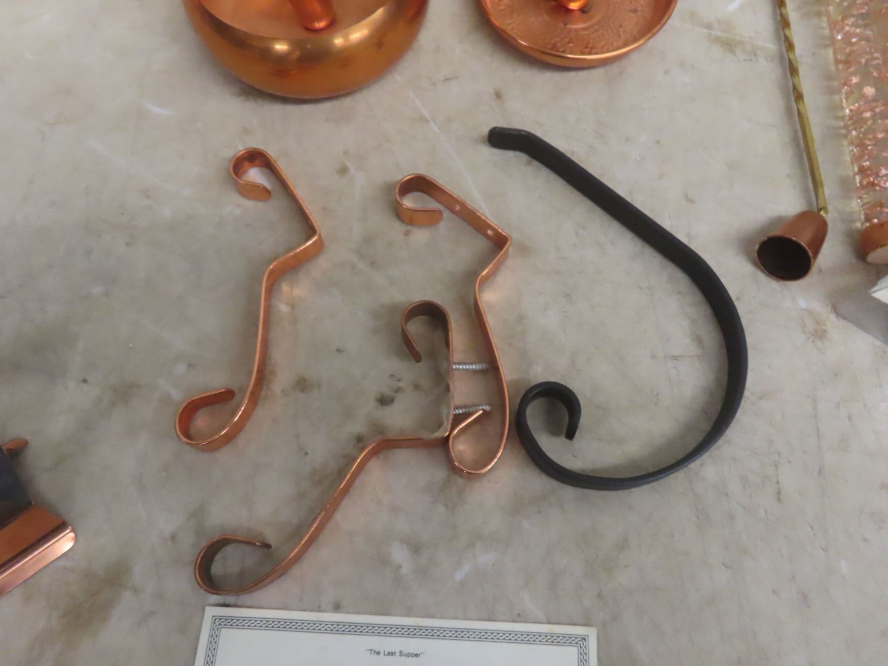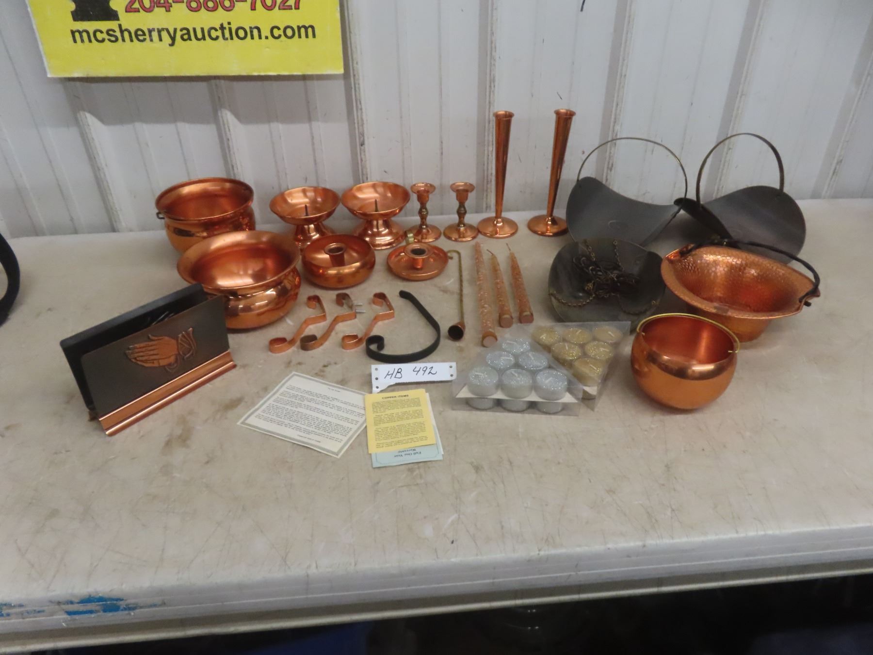 Copper Decor — Candle Holders, Napkin Holder, And Planters.