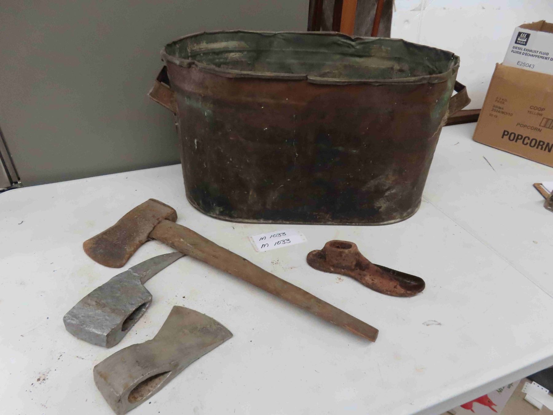 Copper Wash Tub , Axe with Extra Heads, Melting Pot & More