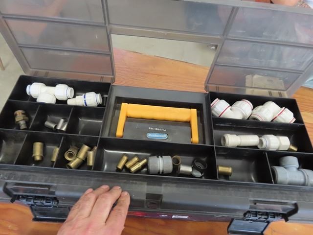 Copper and Brass Plumbing Fittings, Crimper in Tool Box