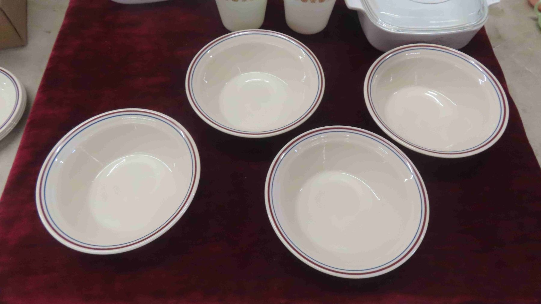 Corelle Dishes, Corningware Casseroles and Tea Pot, 6 Pyrex Coffee Cups