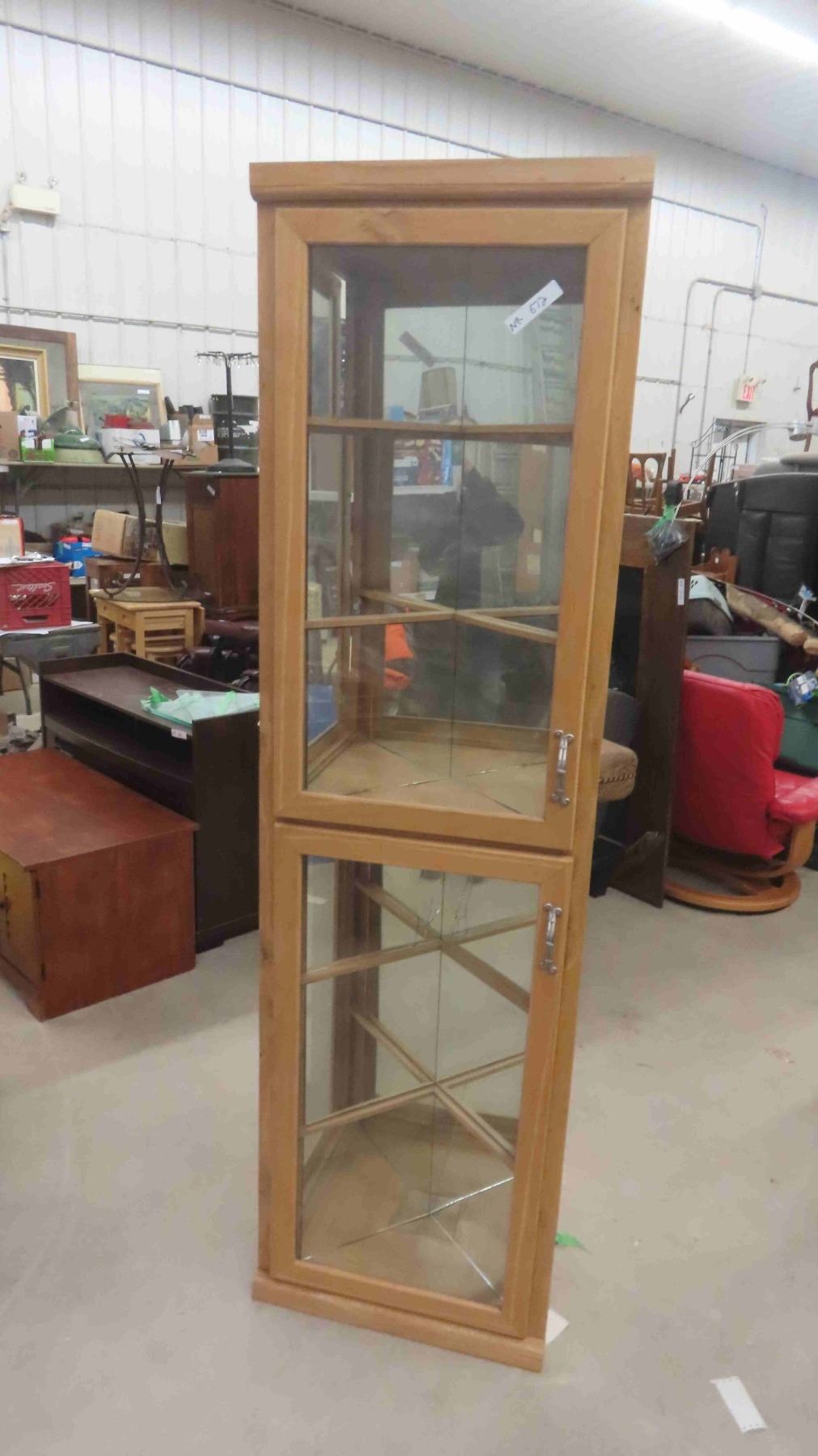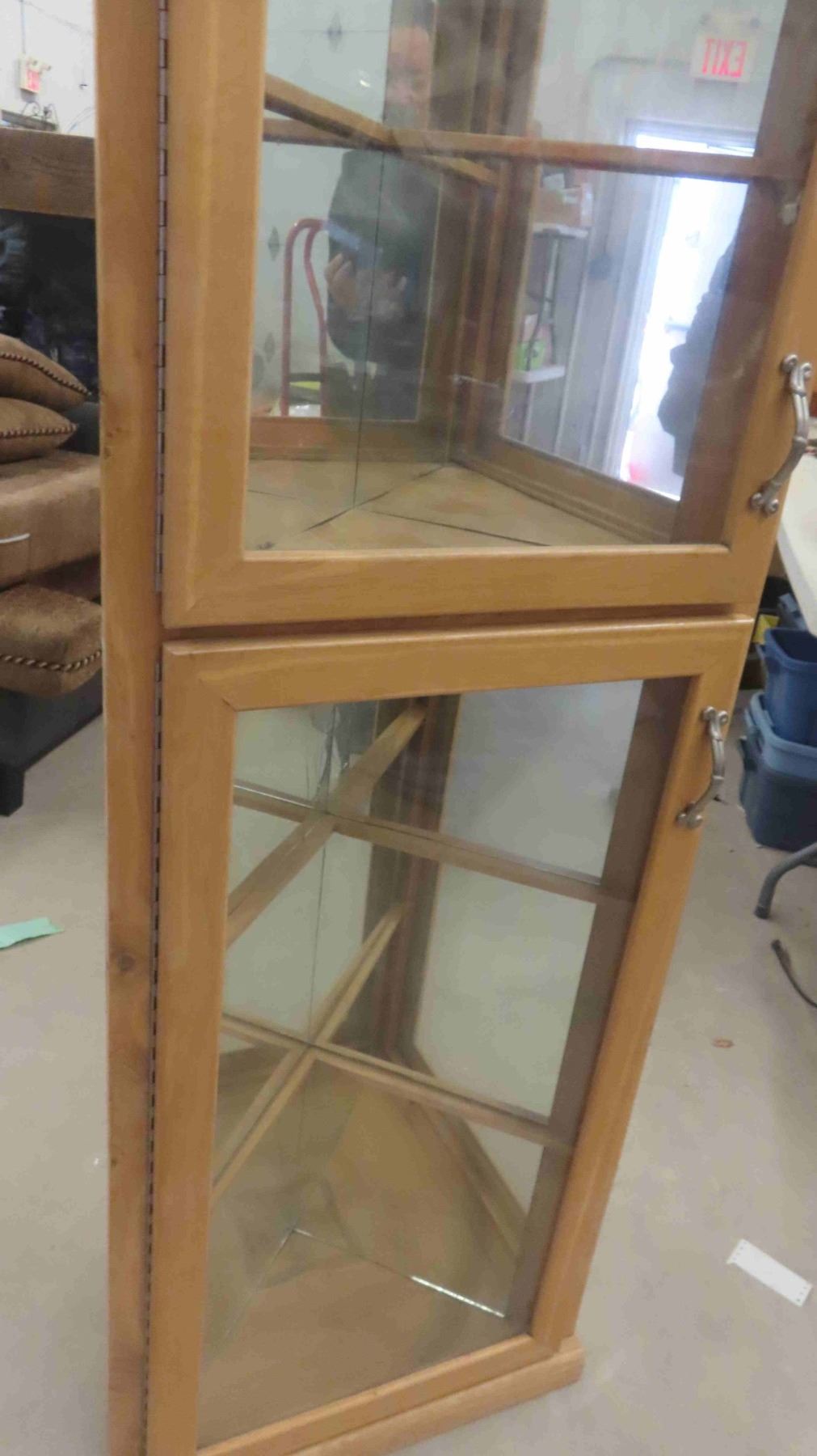 Corner China Cabinet with Shelves (Cracked Mirror in 1 Place) 80'' x 22'' x 13''