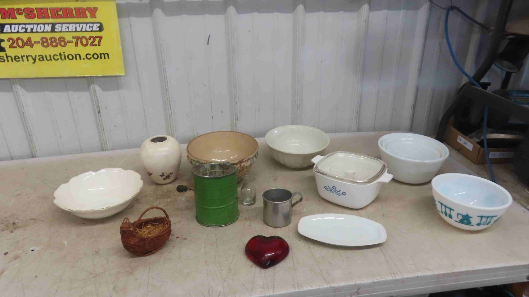 Corningware Casserole Dish, Vintage Sifter, Mixing Bowls & More