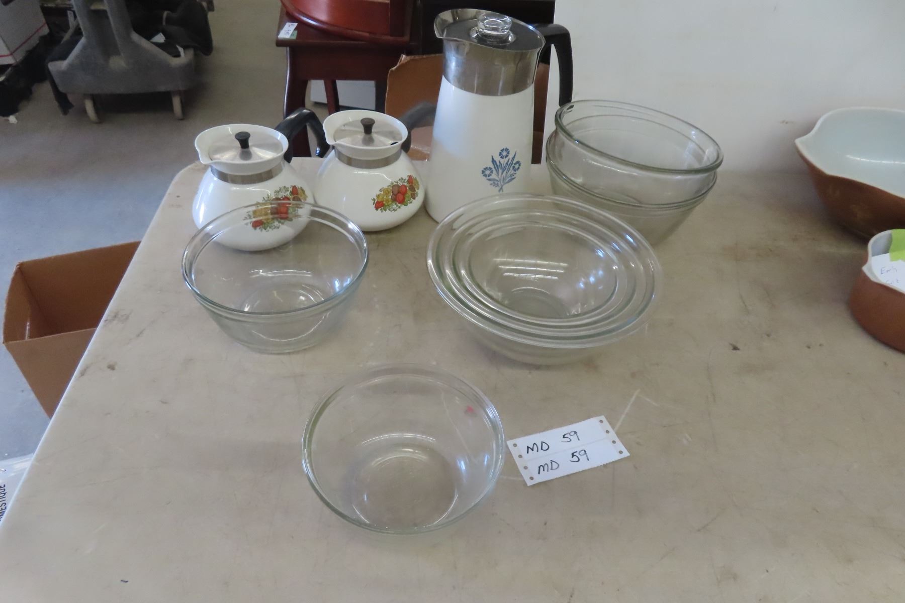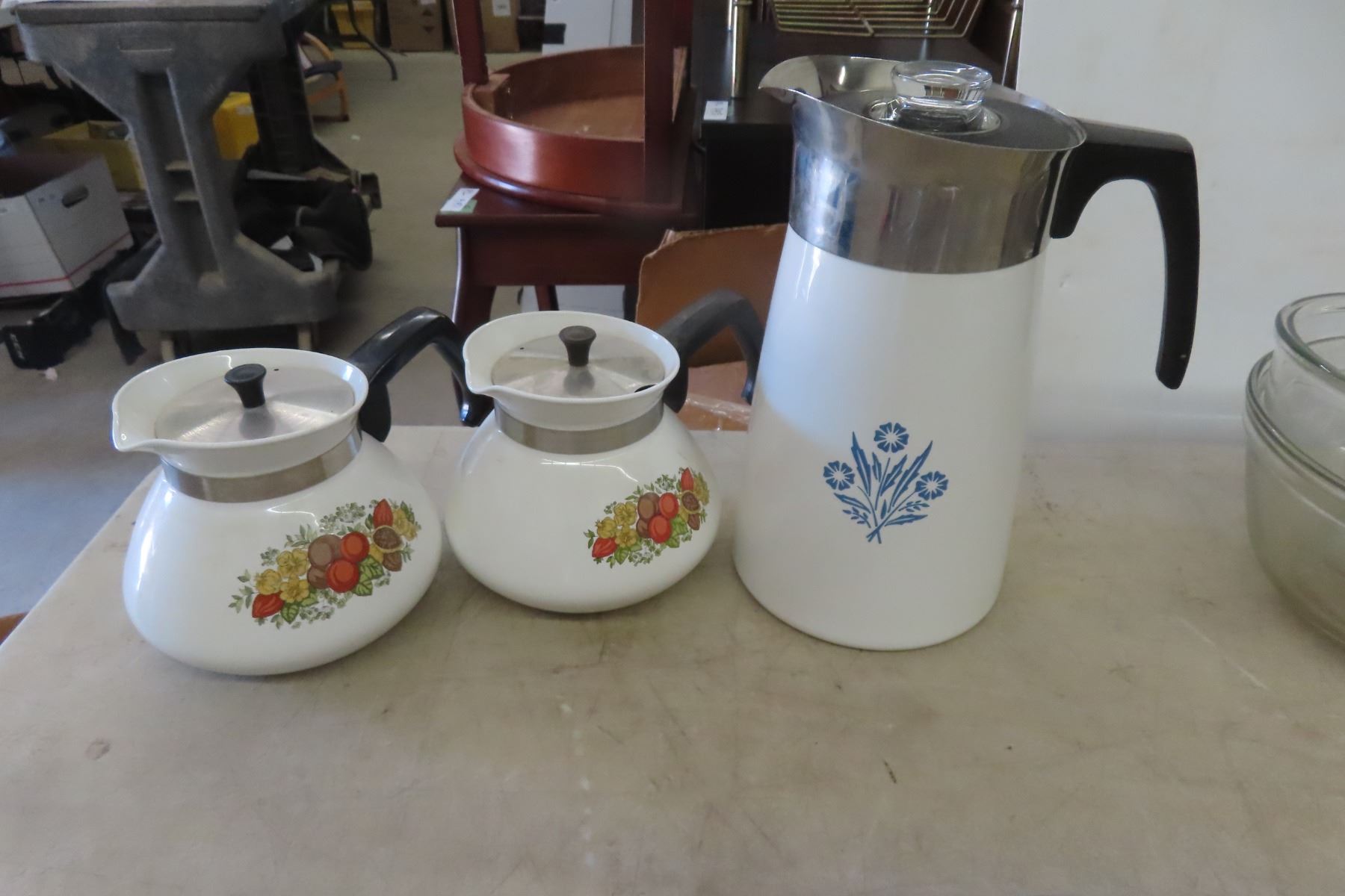 Corningware Tea + Coffee Pots, Anchor + Mixing Bowls