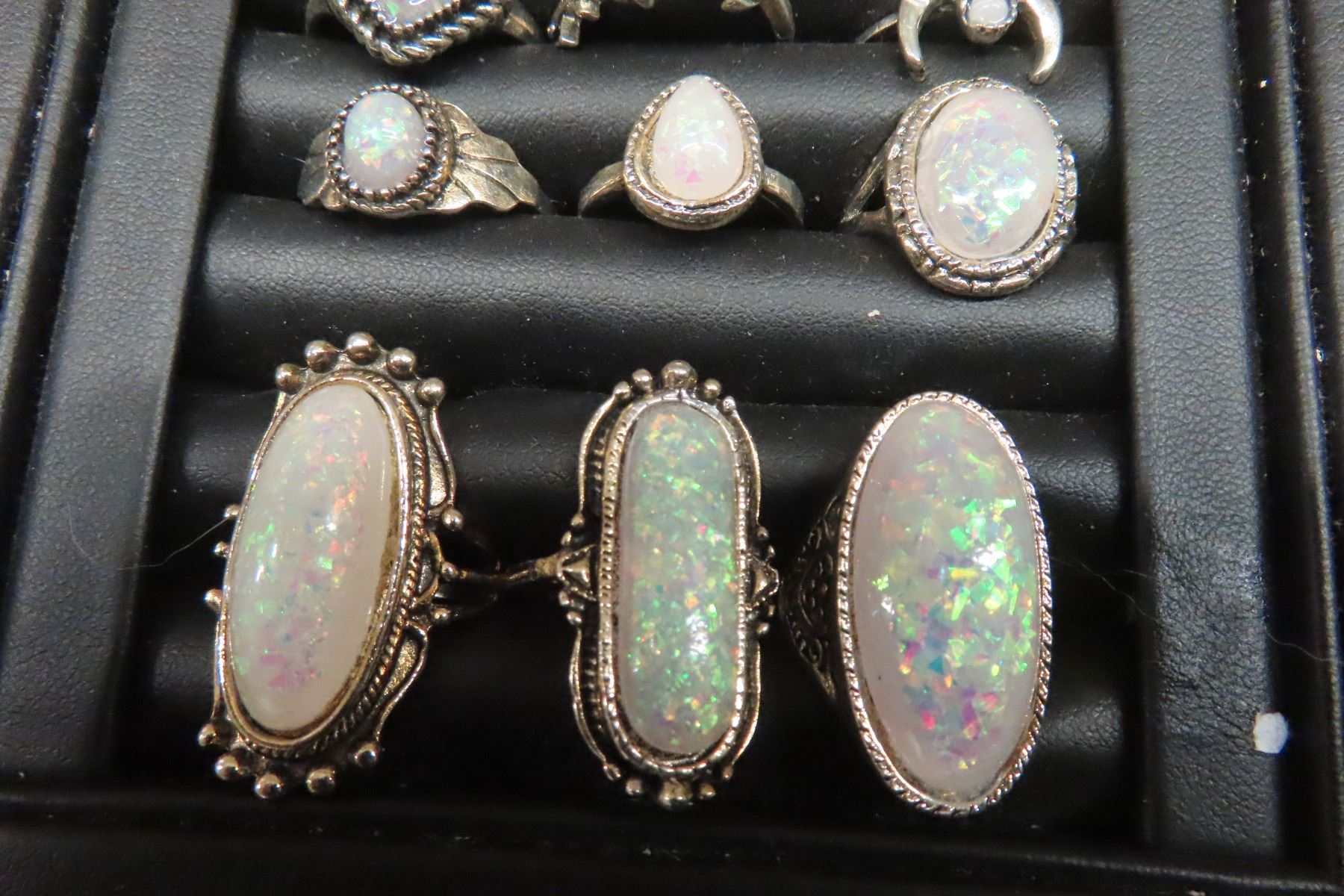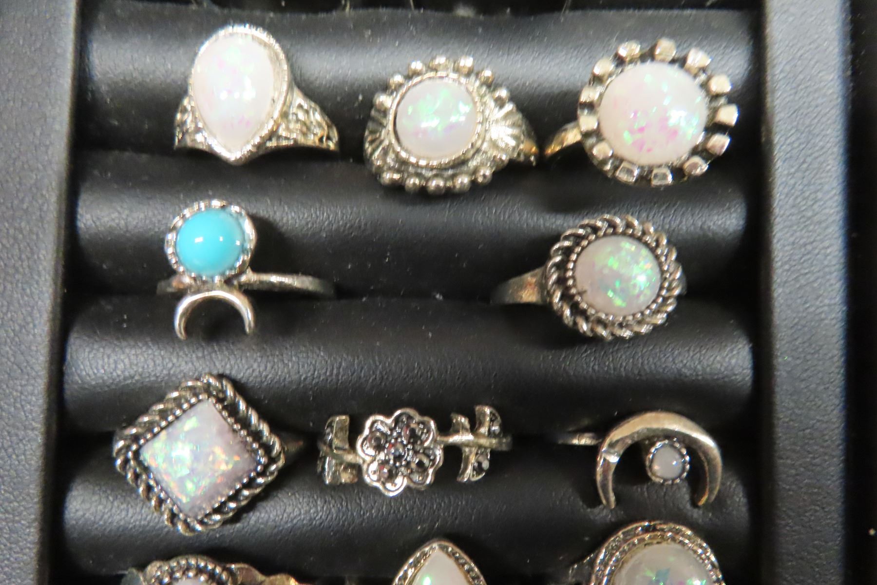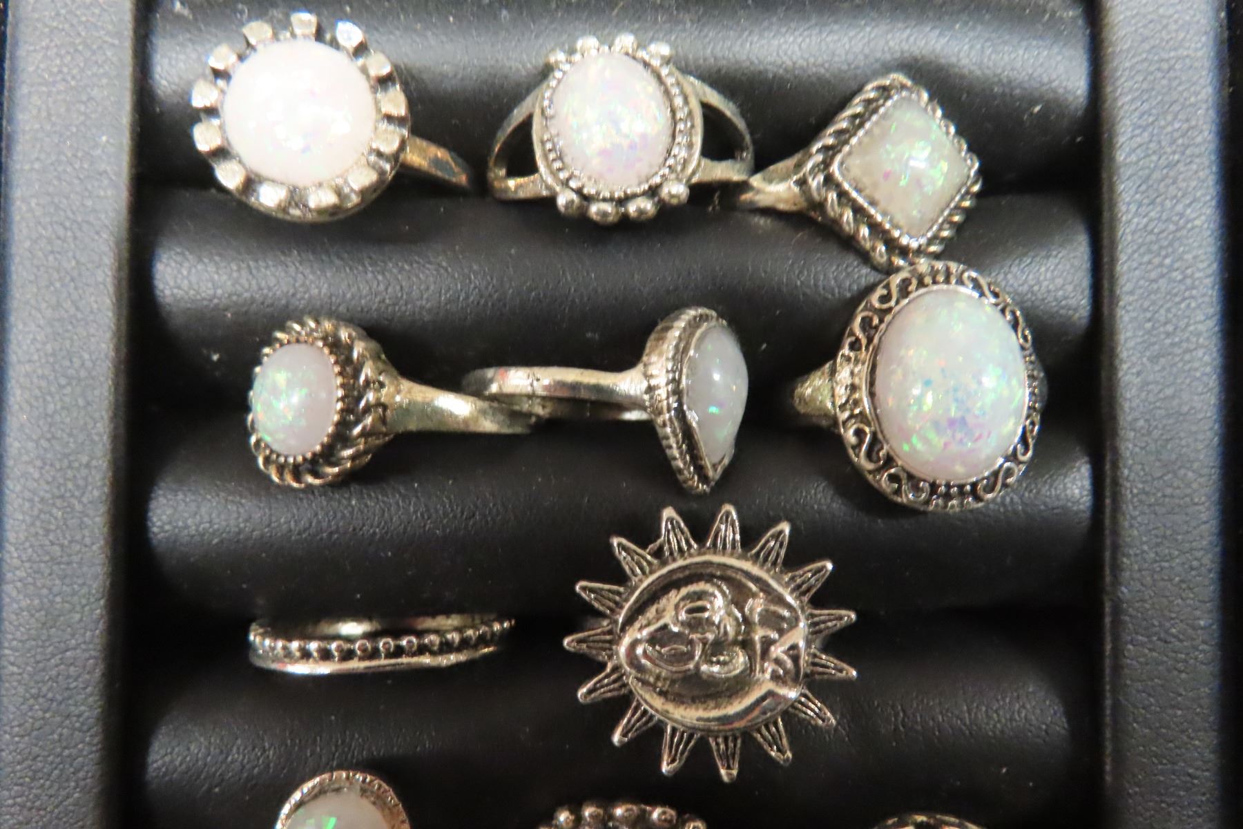 Costume Jewelery in Cases: 22 Rings, 9 pairs Earrings, Suisse Watch and 4 Pkgs Pierced Hoops