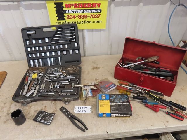 Craftsman Socket Set, Power Fist Hole Saw Kit, Welding Mask, Tool Box with Many Screwdrivers