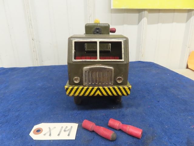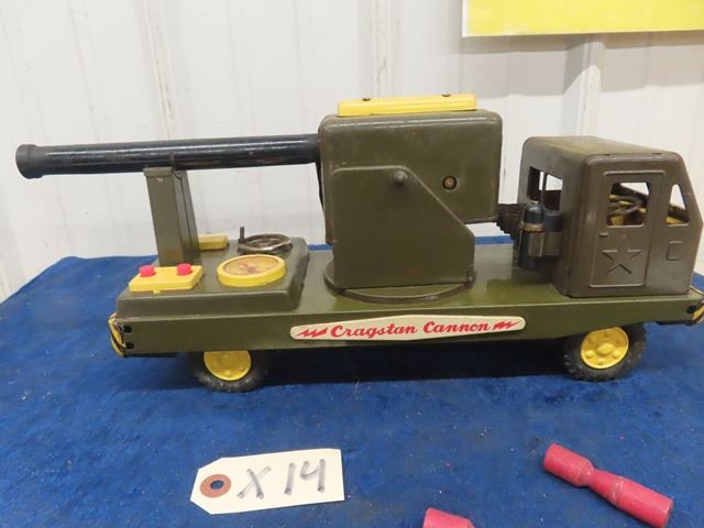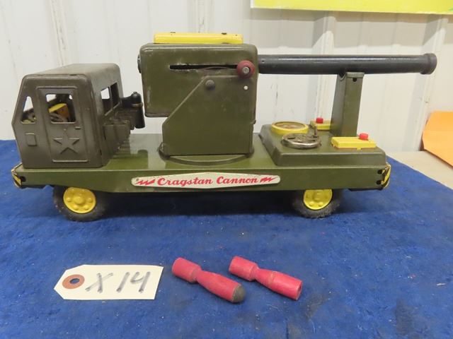 Cragston Cannon Metal Military Friction Truck plus Battery with 2 Ammo Pieces Made in Japan - 15.5" x 6.5" x 4.25"