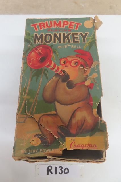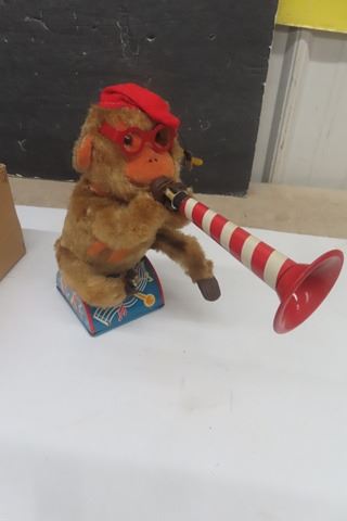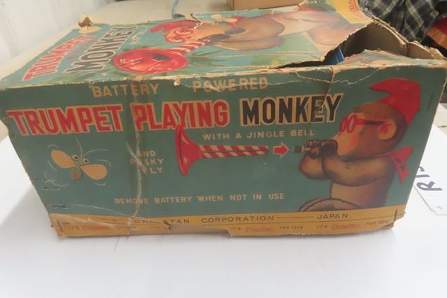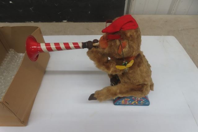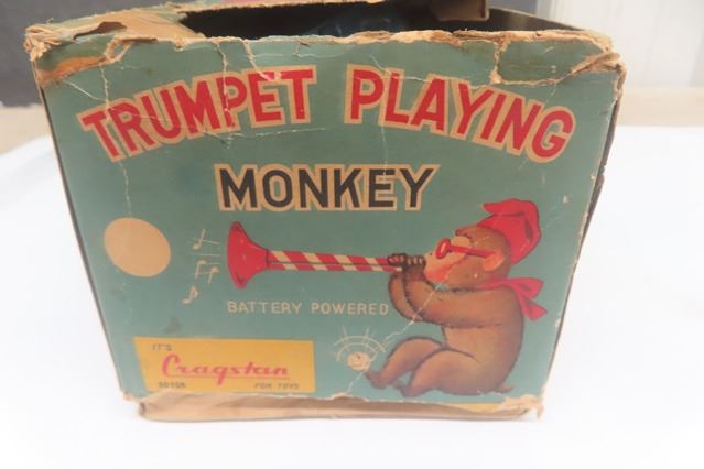 Cragston Monkey Playing the Trumpet Battery Operated Toy with Original Box in Rough Condition